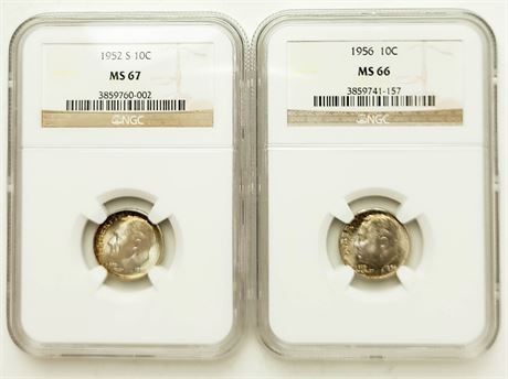 Lot of 2. 1952-S MS-67 and 1956 MS-66 Roosevelt Dimes NGC