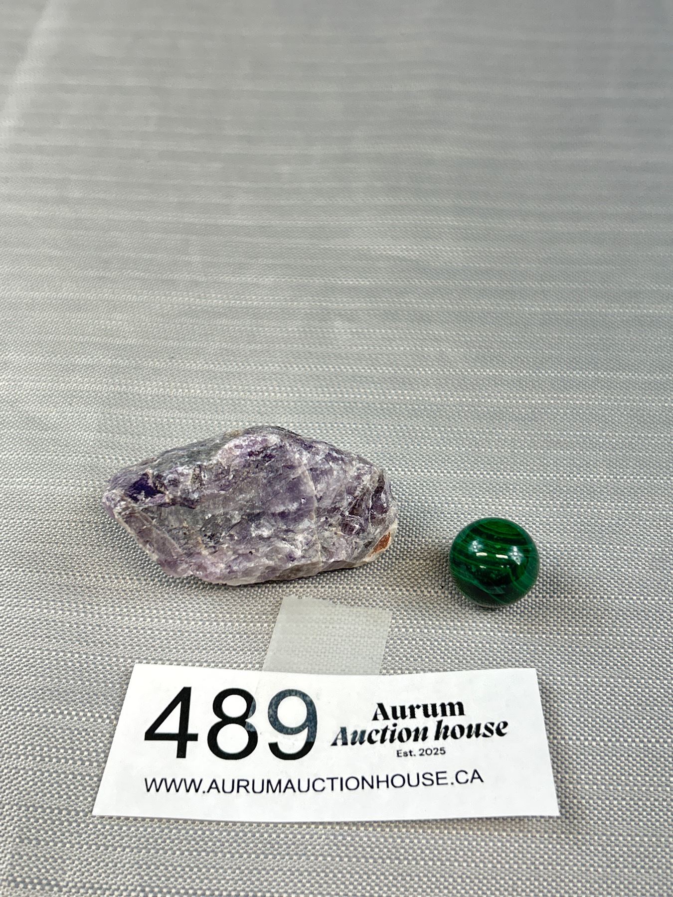Lot of 2 Stones, Malachite Sphere and Amethyst Chetrone