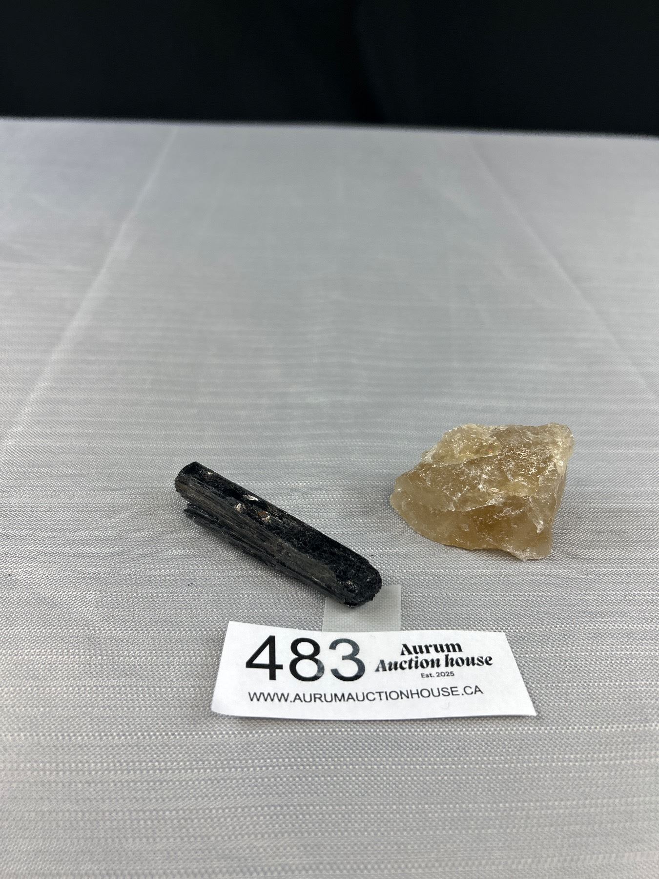 Lot of 2 Stones, Natural Citrine Stone and Black Tourma Line Rough