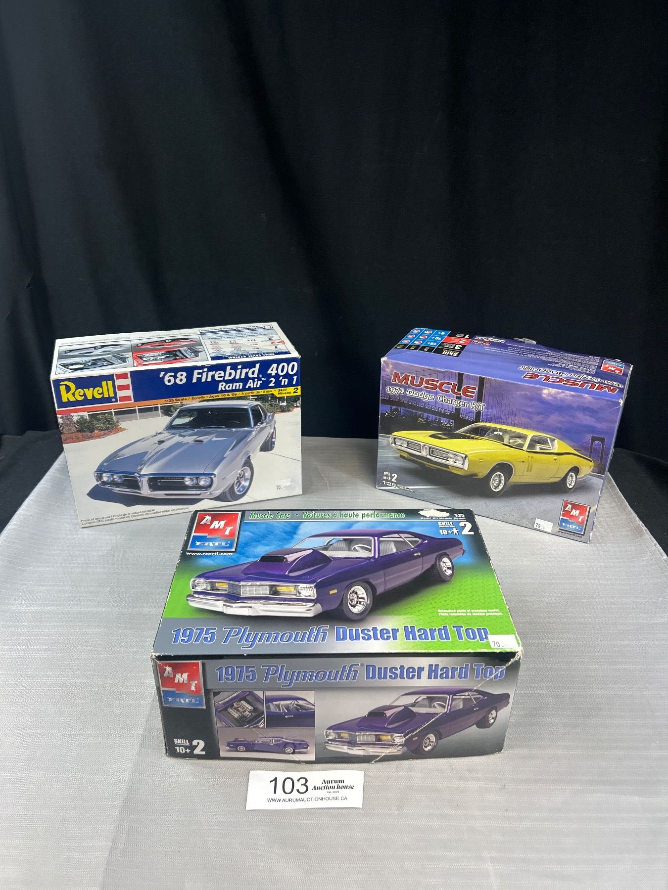 Lot of 3 Model Cars, 1975 Duster Hard Top, 1971 Dodge Charger R/T,68 Firebird 400 Ram Air