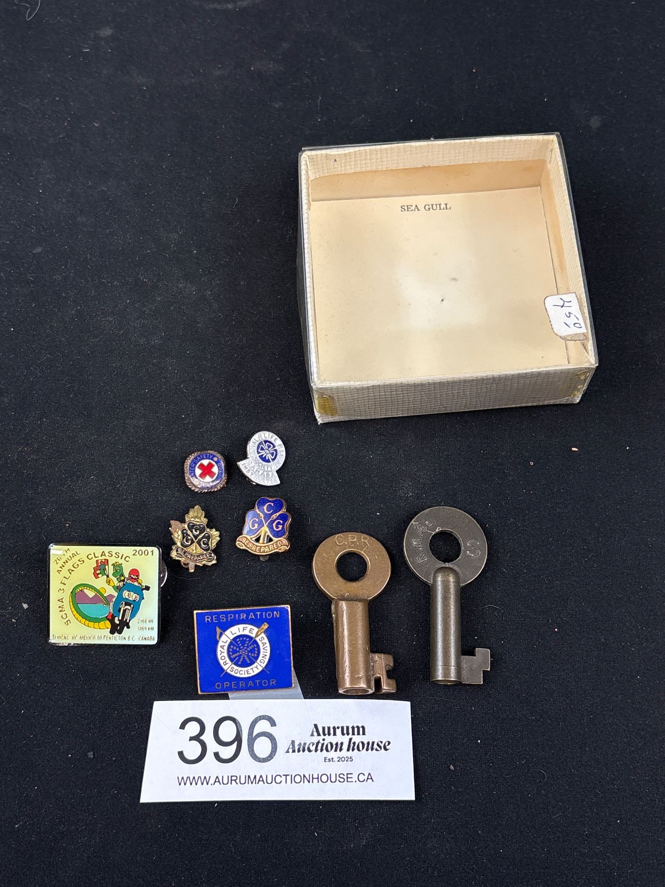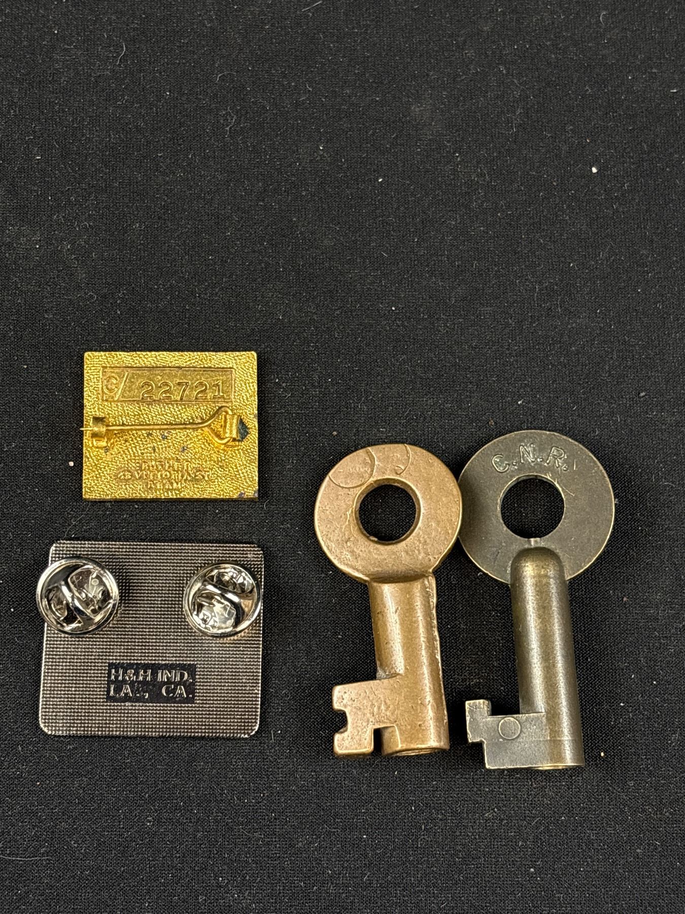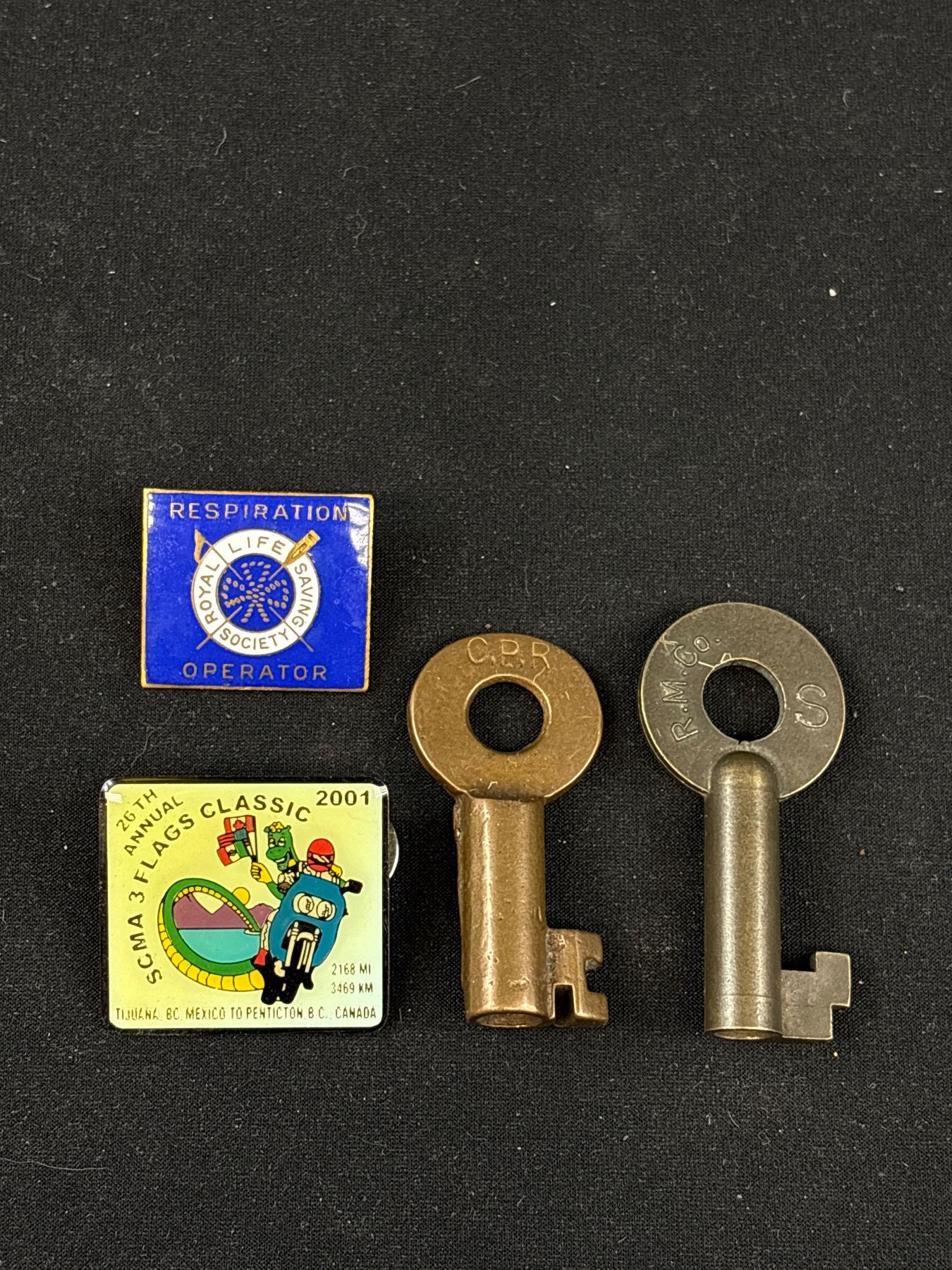 Lot of Vintage Collectible Pins + 2 Railway Keys