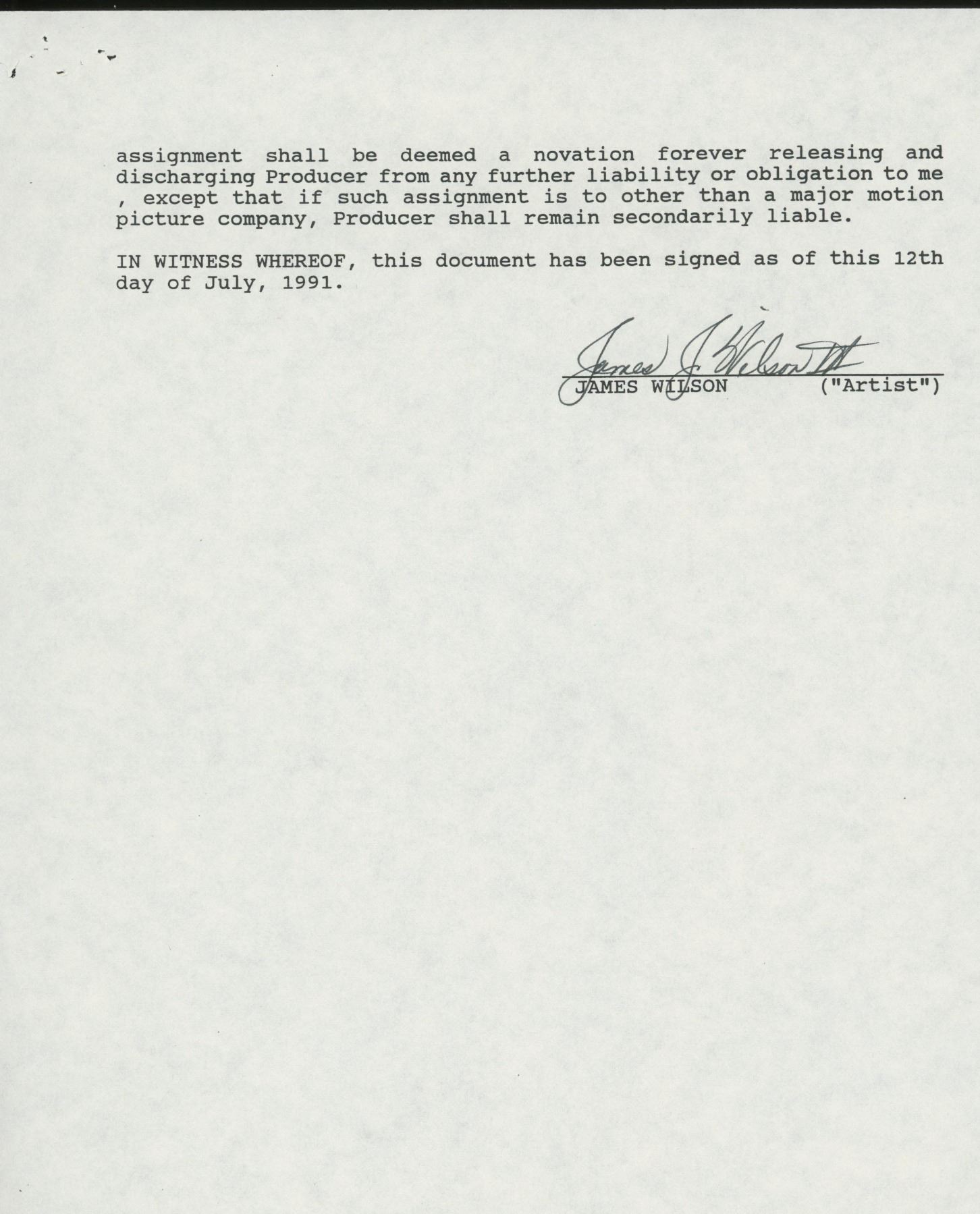 This is a contract signed by James Wilson for Love Potion No. 9. GFA Authenticated