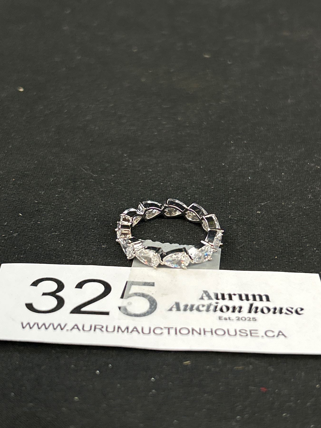Lovely Silver w/ CZ Stones Sparkling Eternety Ring Band Just Like New Size 7.5"