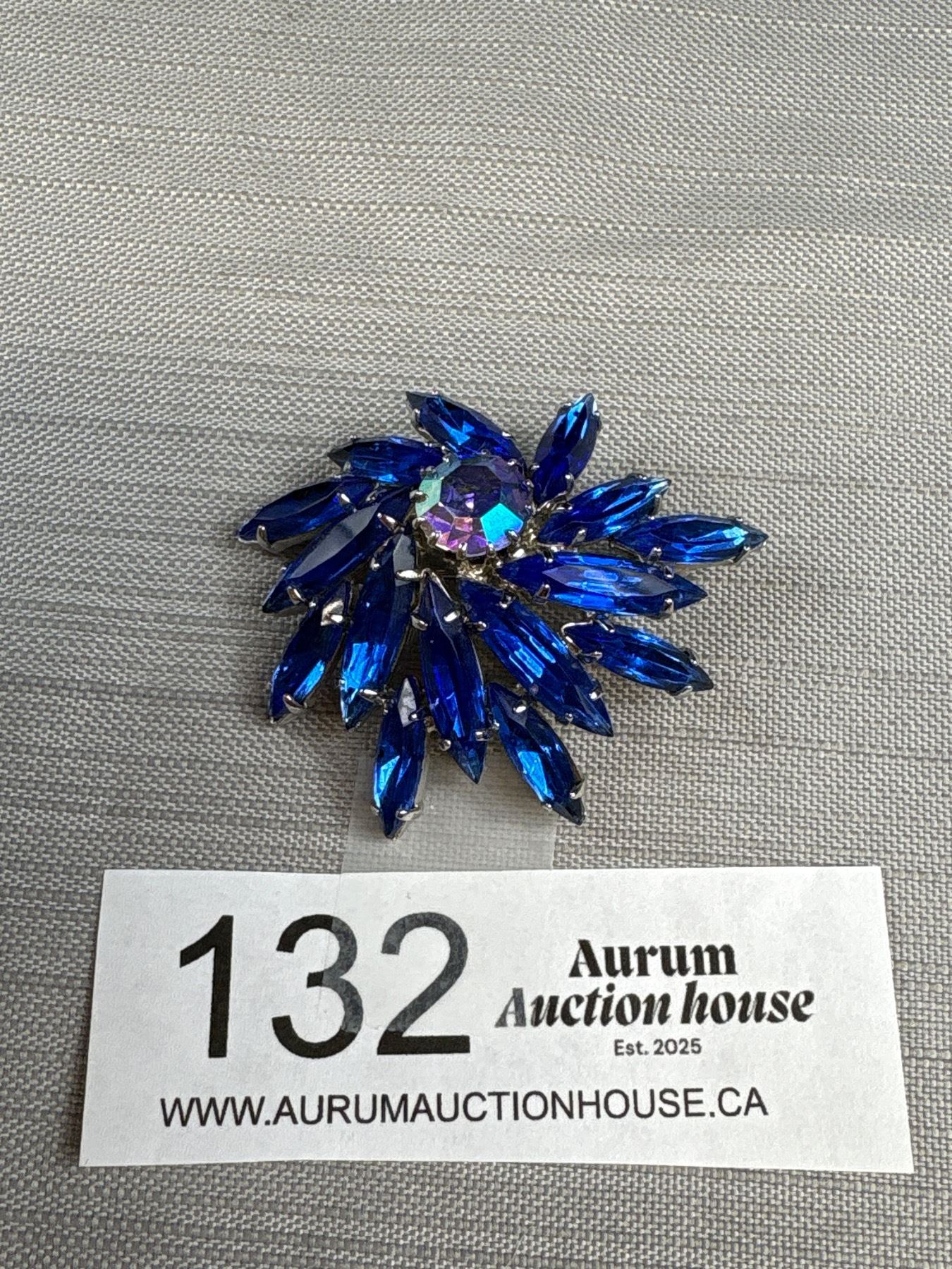 Lovely Vintage Blue Rhinestone Sunburst Brooch (Possibly a Juliana (D&E) Piece)