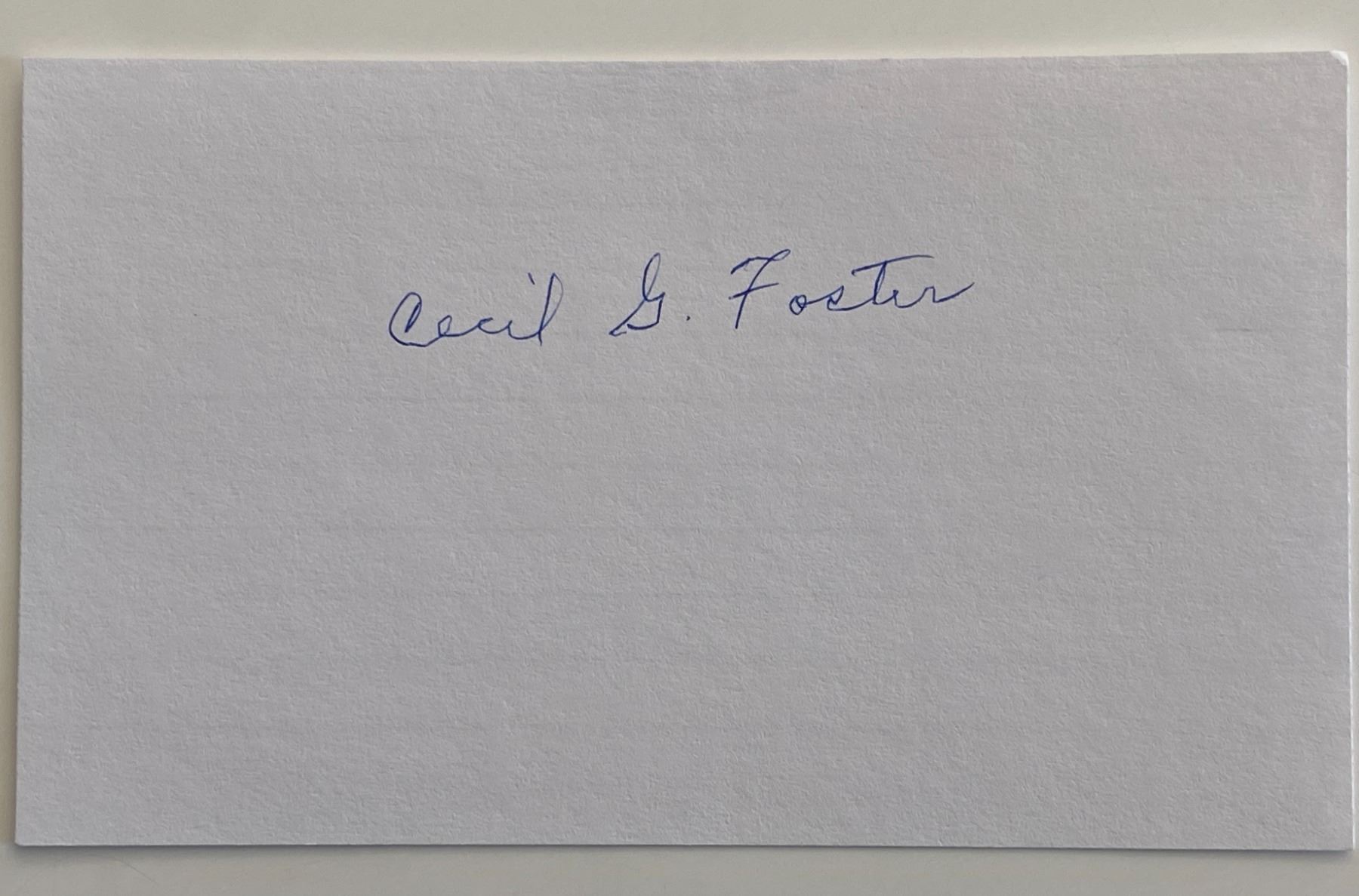 Lt. Col Cecil G. Foster original signature. 5x3 inches