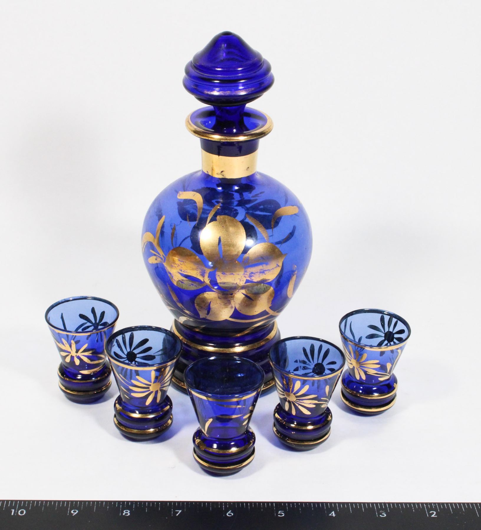 MADE IN ITALY BLUE GLASS DECANTER WITH MINI