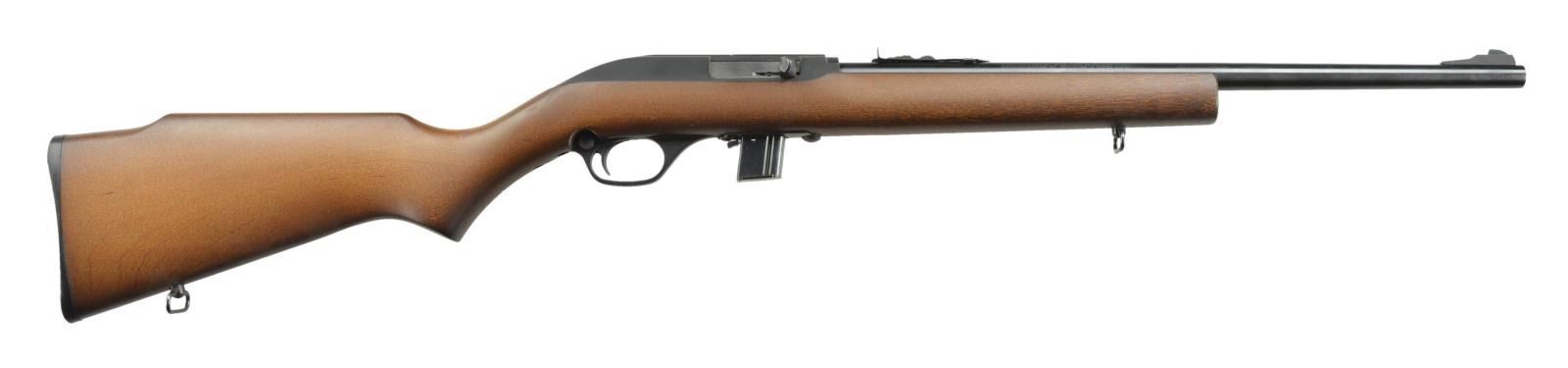 Cal. 22 LR. S# 09293171. Bbl. 18" w/ Microgroove rifling. Ramp front & elevator rear sights. Blue finish. Receiver grooved for tip off scope mts. Hardwood stock w/ sling swivels & Marlin buttplate. MAGS: 1-7 rd. CONDITION: near excellent overall w/ a few marks. Very good bore. (22-1240/MD). MODERN. $200-300.