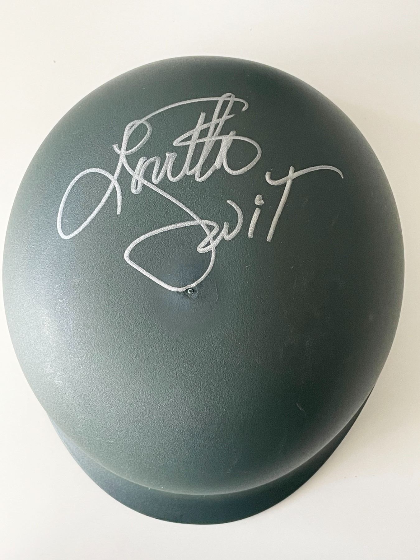 MASH Loretta Swit signed helmet- JSA Authenticated. This is a replica of the helmet she wore on the hit tv show.