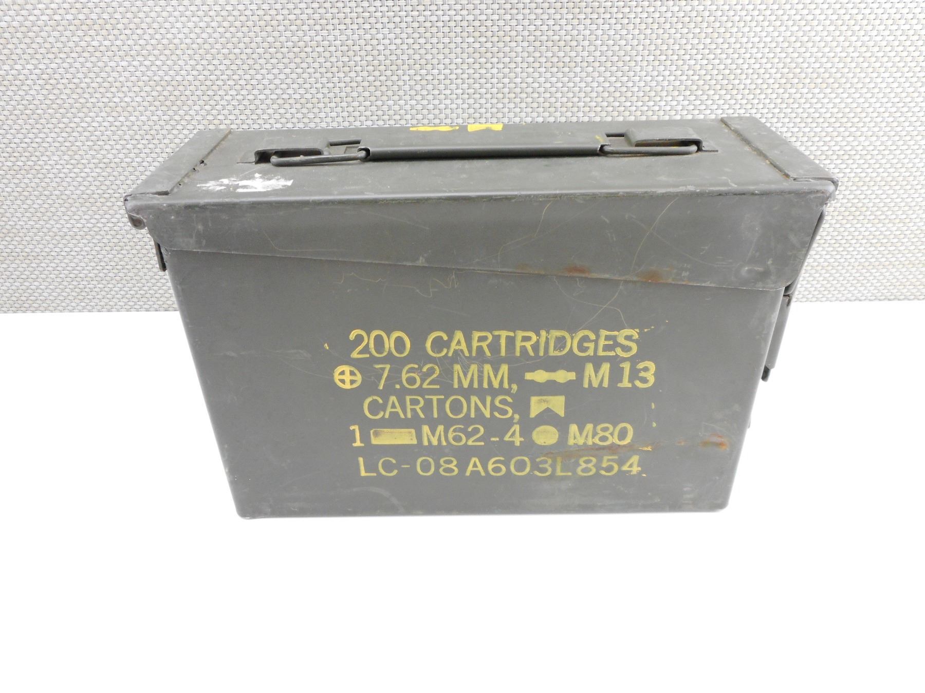 METAL AMMO TIN , METAL AMMO TIN, STAMPED 7.62MM M13 LC-08A603L854 APPROX. SIZE - 11" X 4" X 7"