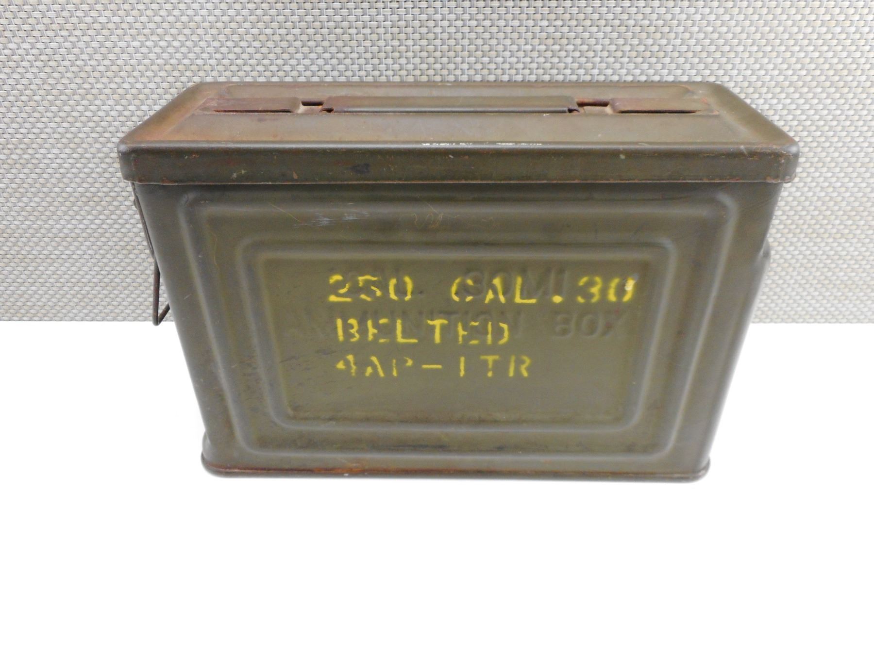 METAL AMMO TIN , STAMPED 250 CAL .30, BELTED 4AP-ITR, APPROX. SIZE - 10" X 4" X 7.5"