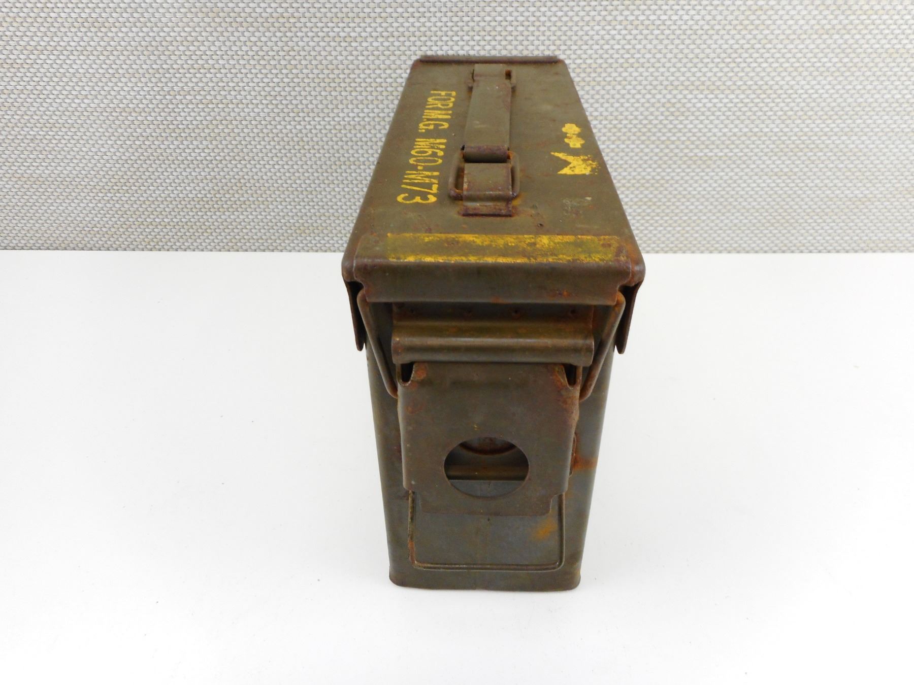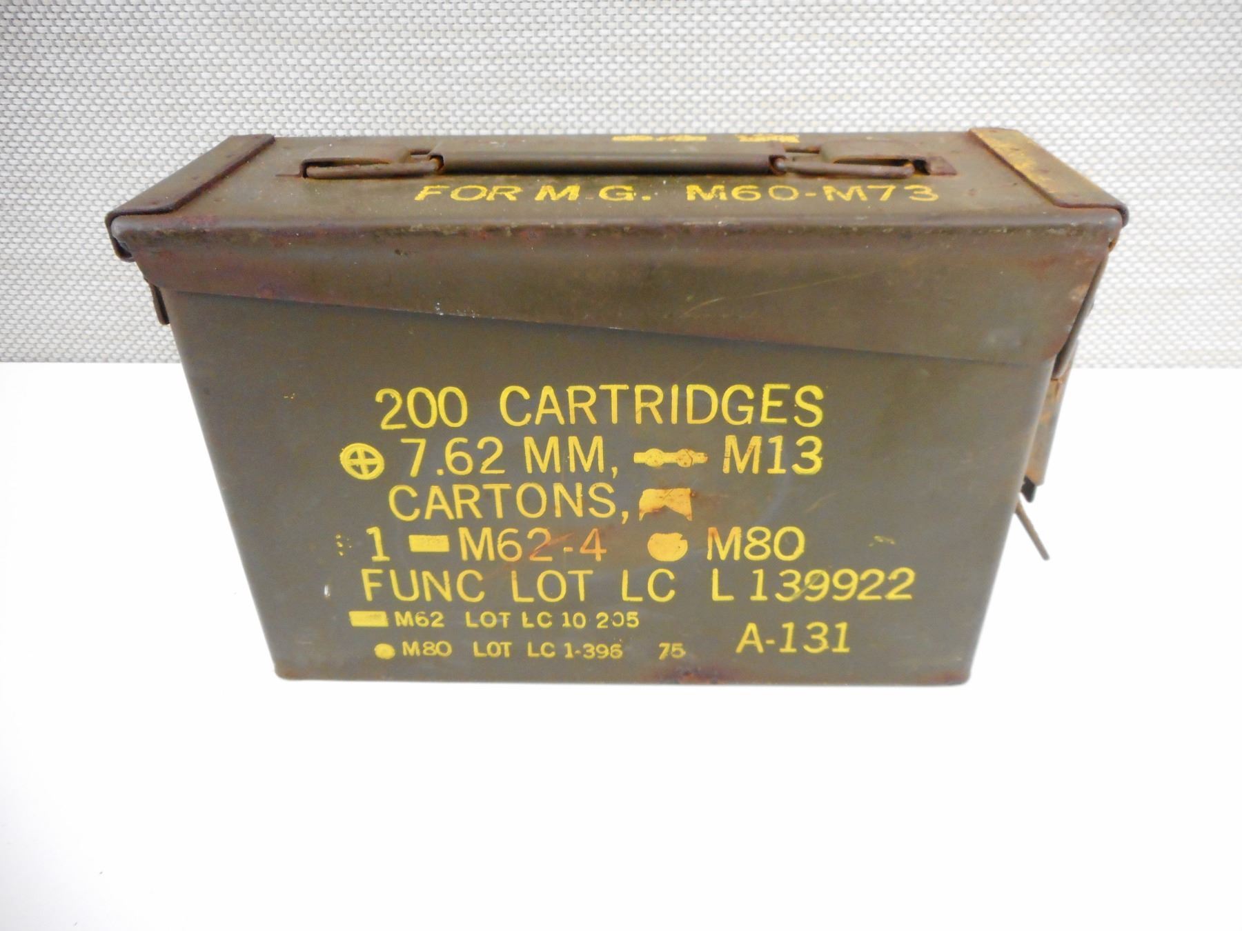 METAL AMMO TIN , APPROX. SIZE 11" X 4" X 7", 200 CARTRIDGES, 7.62MM, M13, CARTPMS. 1-M62-4,M80, FUNC LOT LC L139922