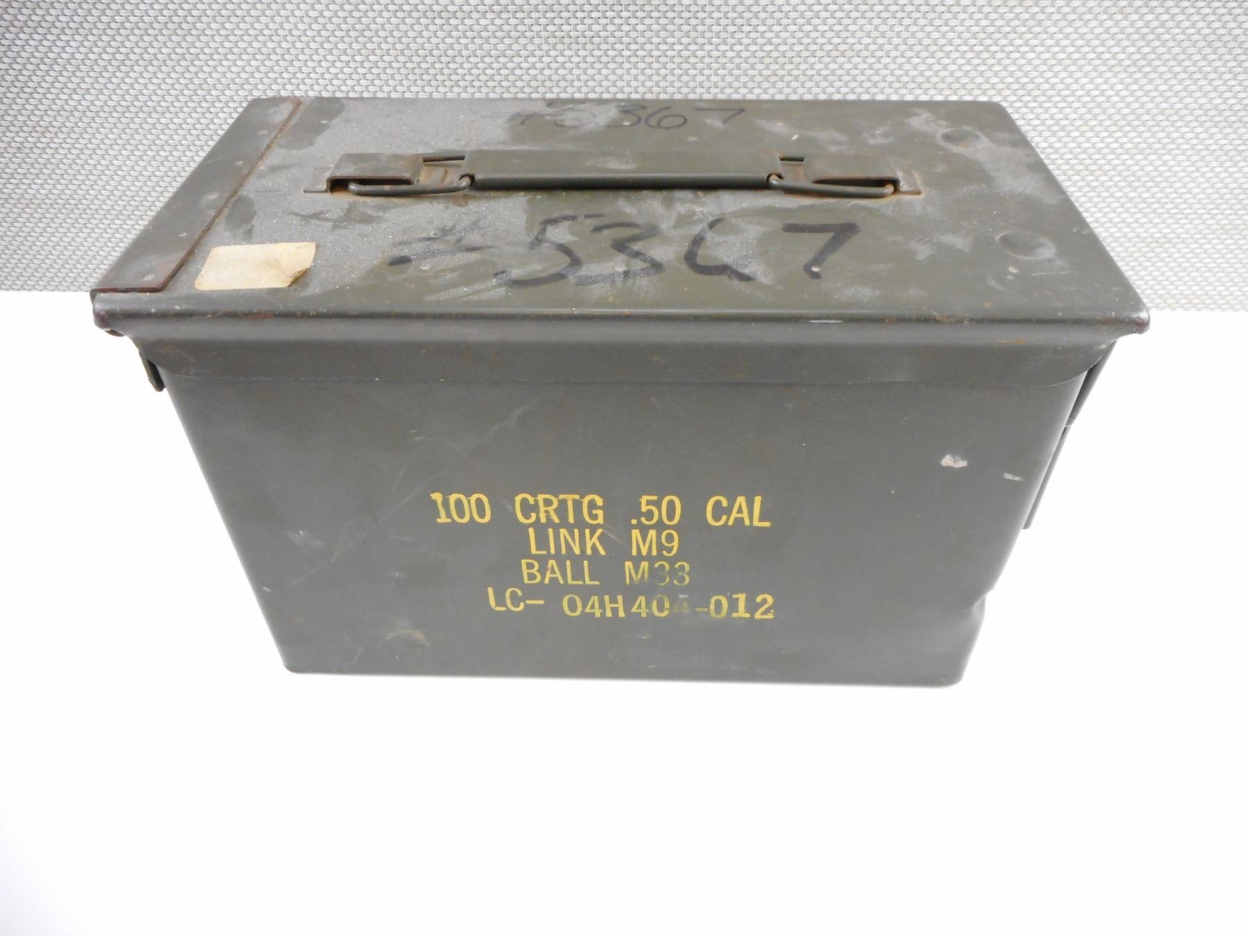 METAL AMMO TIN , APPROX SIZE 12" X 6" X 7.5", STAMPED 100 CRTG/ .540 CAL, LINK M9, BALL M33, LC-04H404-012
