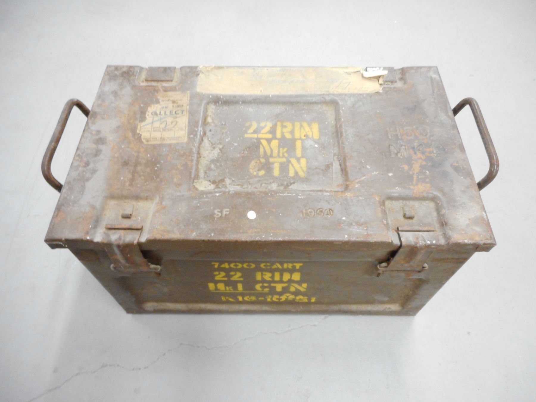 METAL AMMO TIN , APPROX SIZE 18" X 11" X 10", STAMPED 7400 CART, MK 1 CTN, K16*10*51