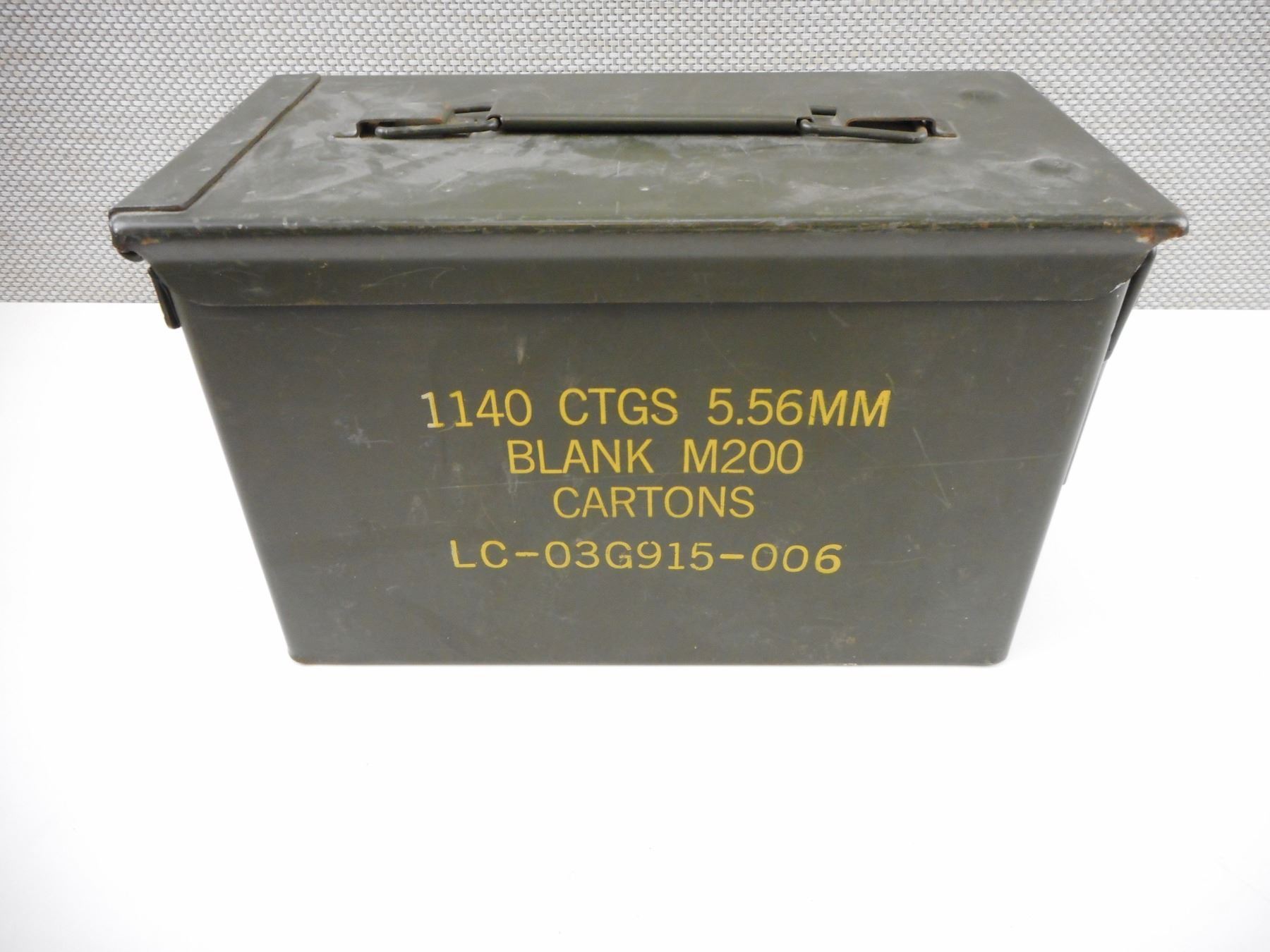 METAL AMMO TIN , APPROX. SIZE 12" X 6.5" X 7.5", STAMPED 1140 CTGS 5.56MM, BLANK M200, CARTONGS, LC-03G915-006