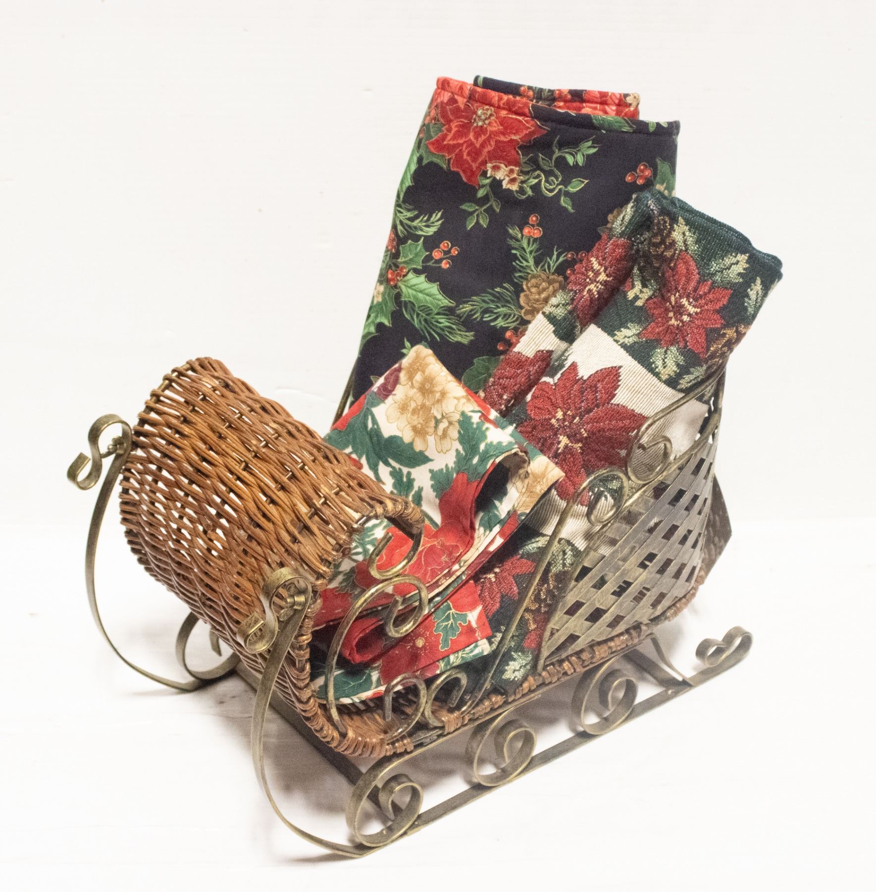 METAL AND WICKER CHRISTMAS SLEIGH 15" X