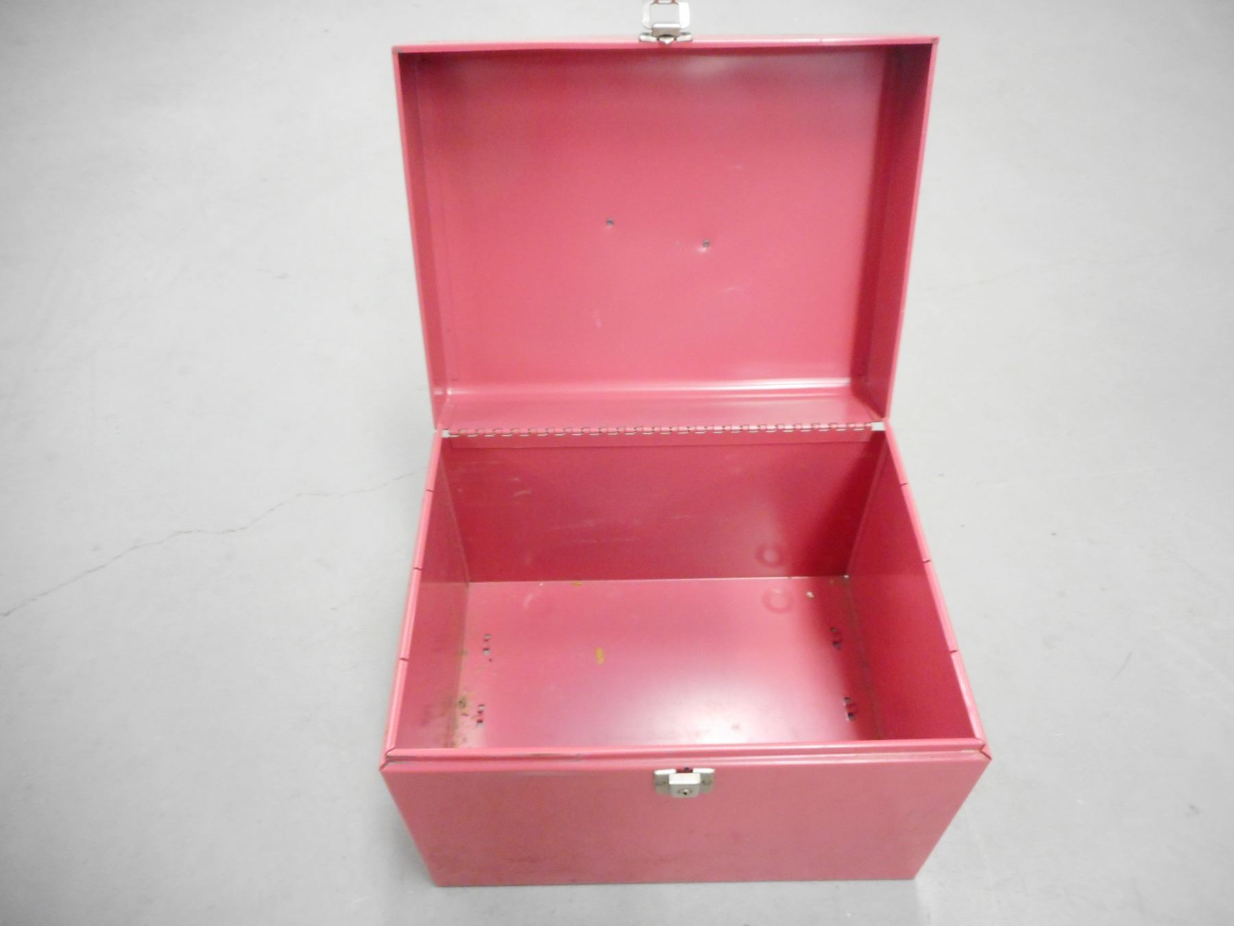 METAL TIN , APPROX SIZE 13" X 10" X 10", NO KEY FOR LOCK