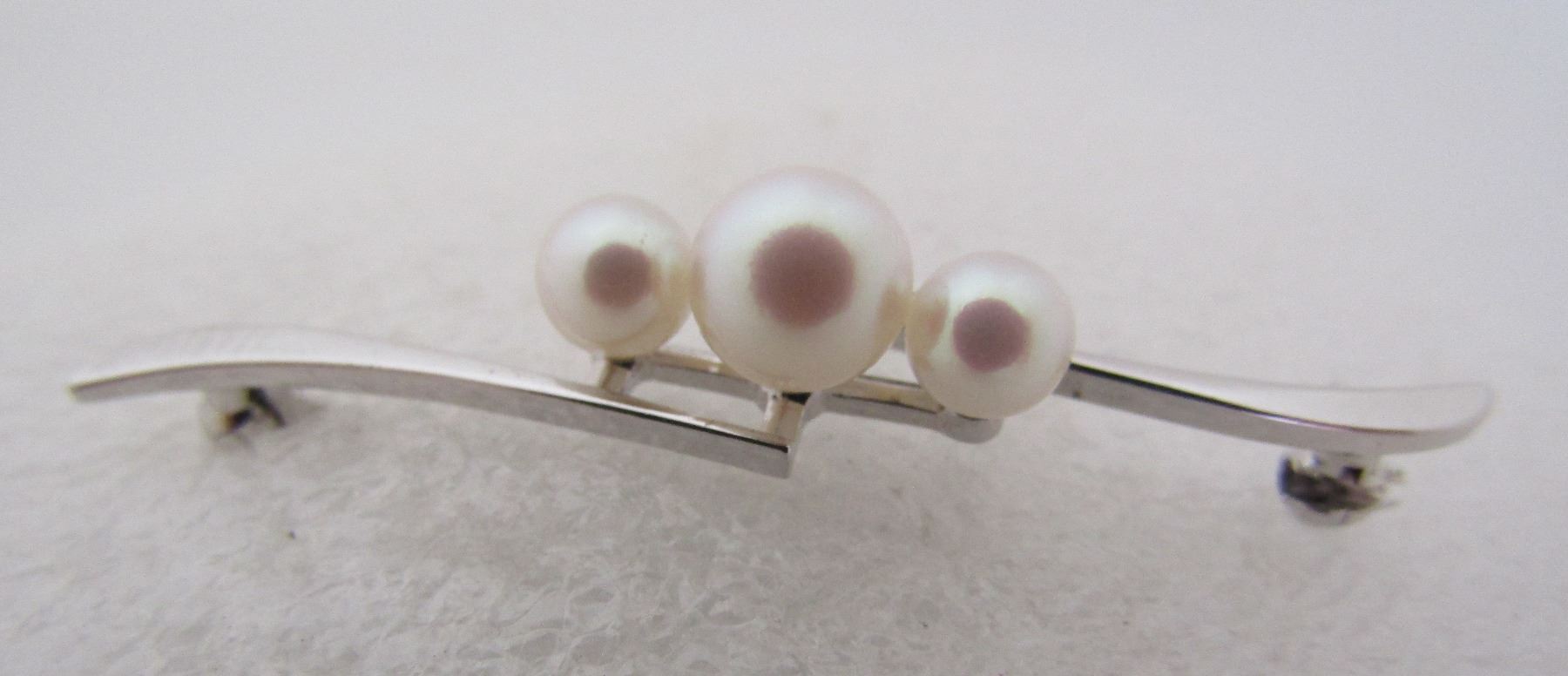 VINTAGE ESTATE GENUINE HALLMARKED MIKIMOTO STERLING SILVER BROOCH. 50MM LONG. WEIGHS 3 GRAMS. PIN WORKS FINE. USA SHIPPING $5.