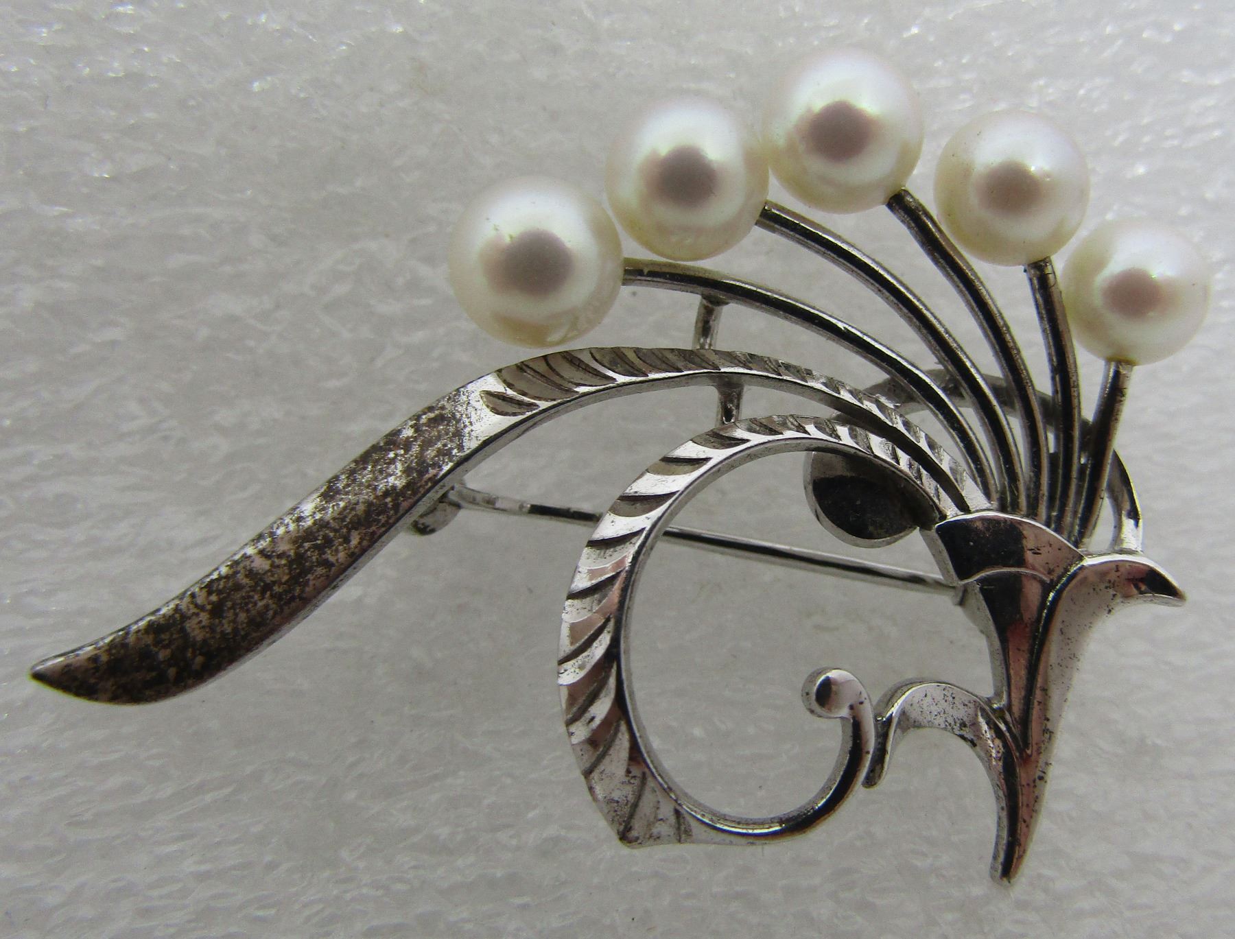 VINTAGE ESTATE GENUINE HALLMARKED MIKIMOTO STERLING SILVER BROOCH. 40MM LONG. WEIGHS 4.1 GRAMS. PIN WORKS FINE. USA SHIPPING $5.