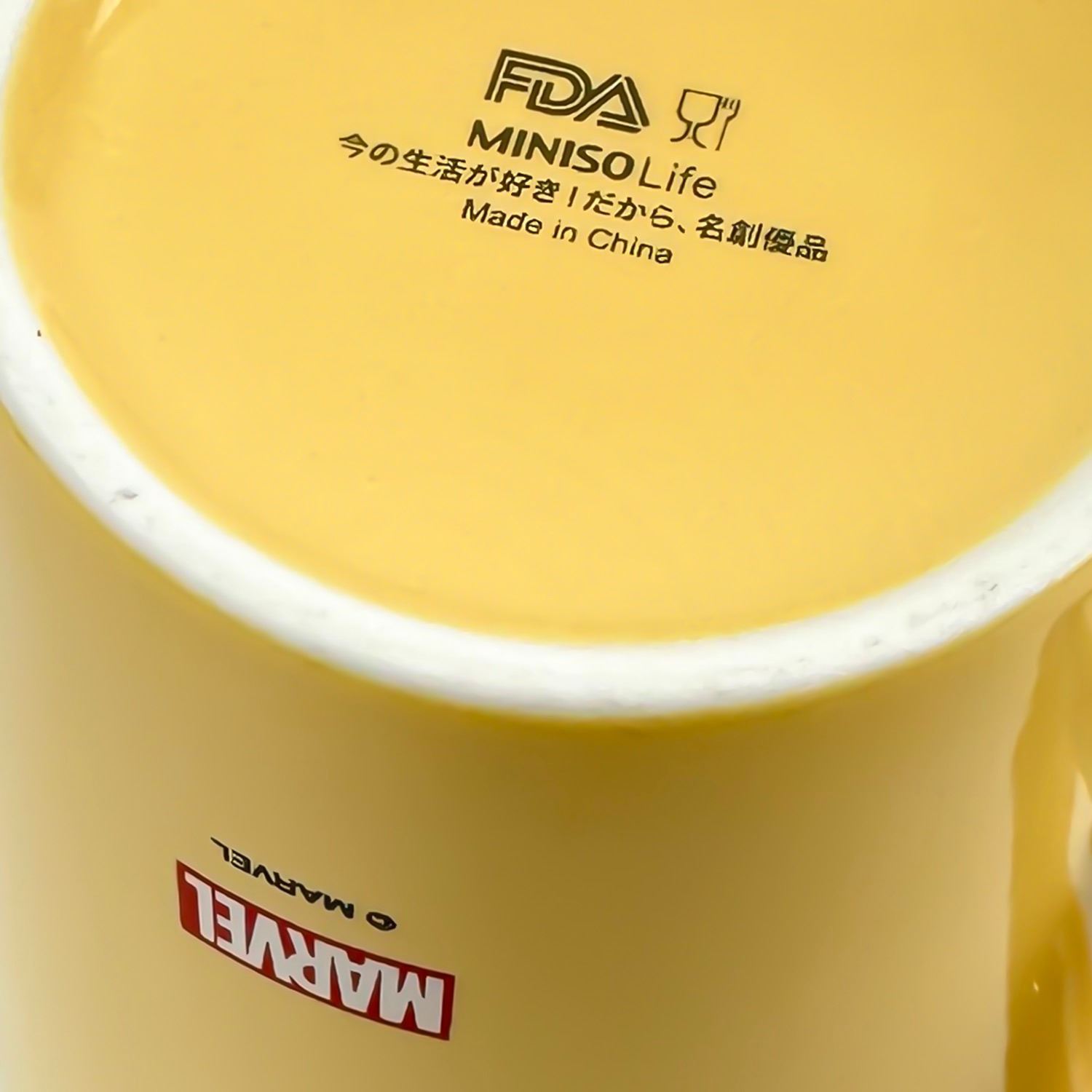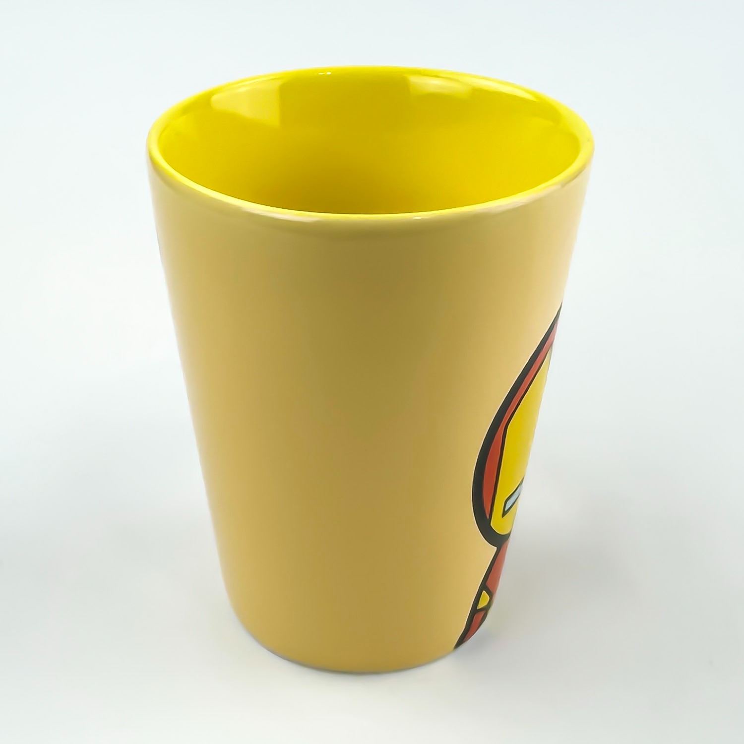 #8735 - PORCELAIN FDA MINISO LIFE - MARVEL IRON MAN DESIGN COFFEE MUG. CARTOON COMIC CHARACTER CUP/MUG. NO CRACKS, CHIPS OR REPAIRS. MEASURES 4.5” (11.5 CM) TALL