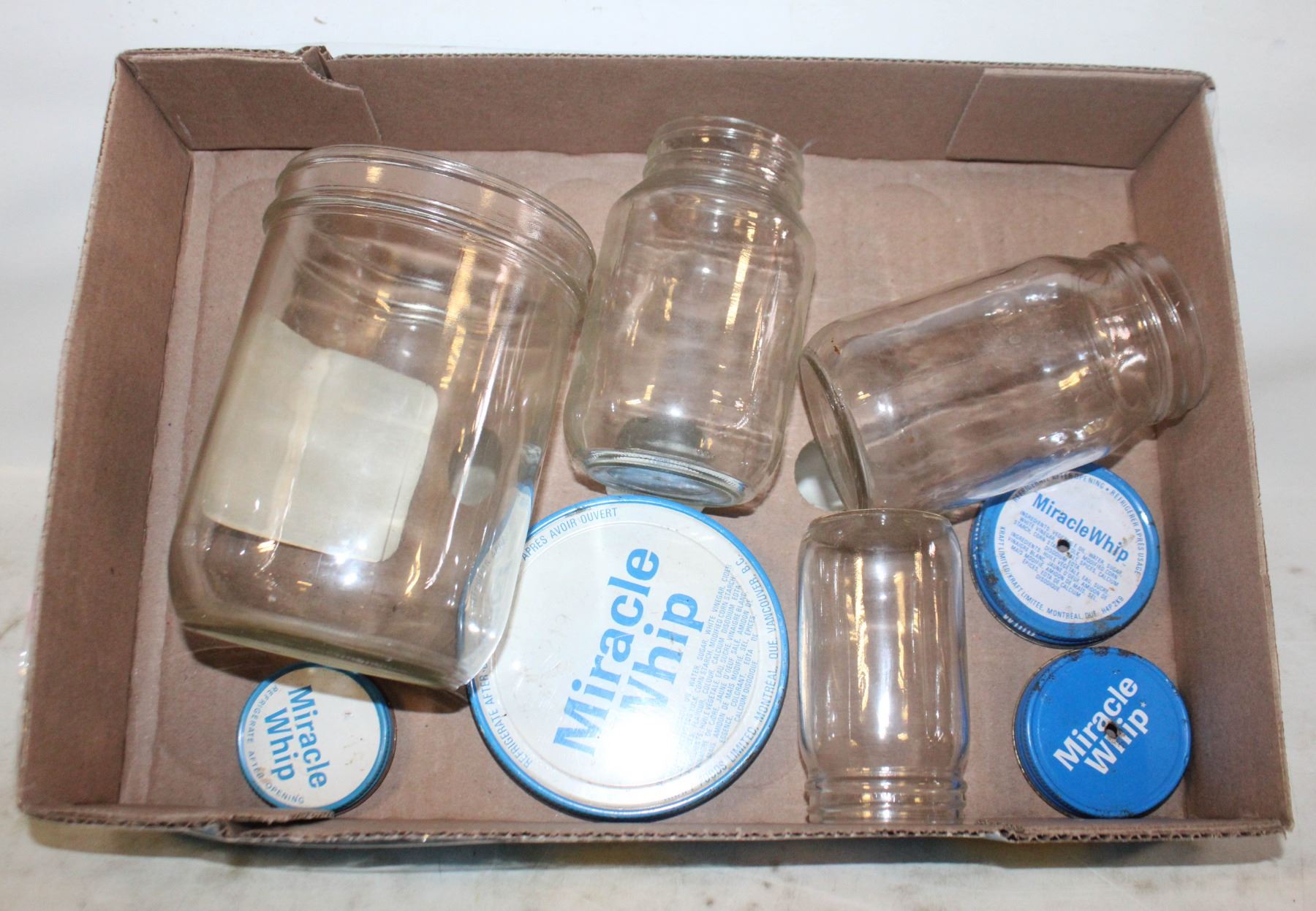 MIRACLE WHIP GLASS JARS WIH METAL LIDS