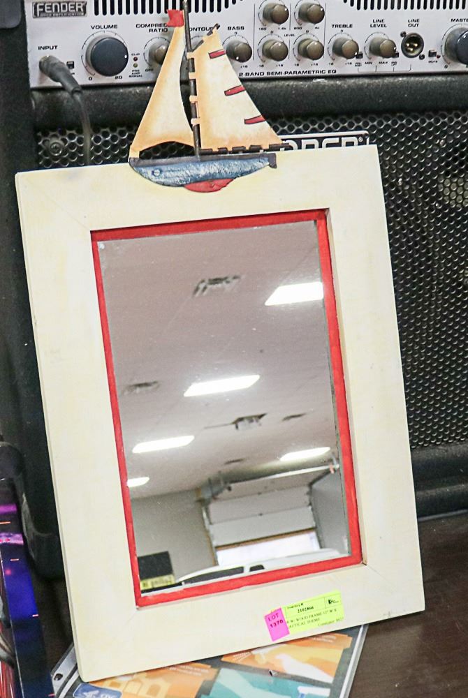 MIRROR W/ WOOD FRAME 12" W X 16" H -NAUTICAL THEME