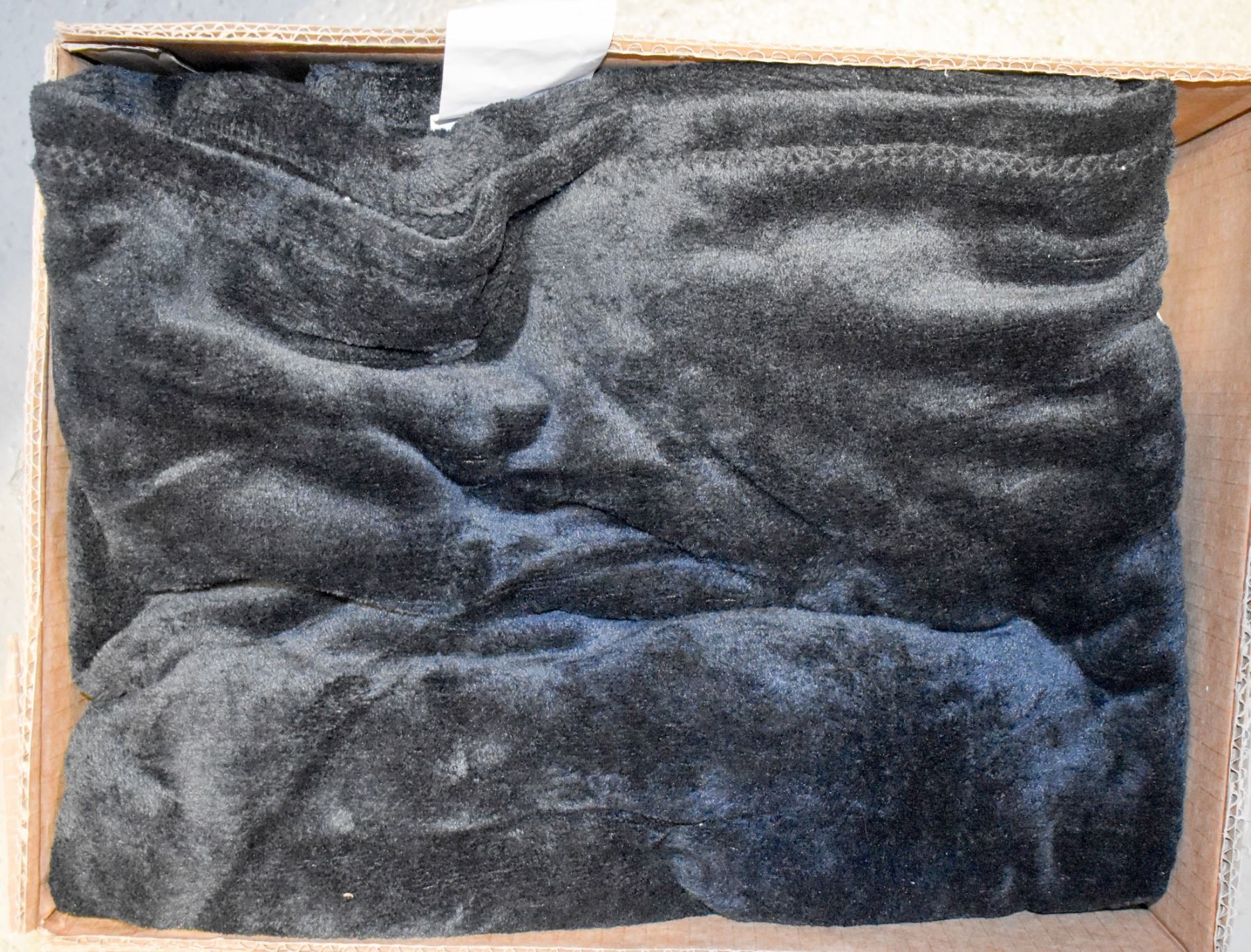 2 WHITE PILLOW SHAMS, APPROX. 26.5 X 19.5", ONE FITTED LIGHT BLUE BLANKET, ONE PLUSH BLACK BLANKET, APPROX. 50 X 60"