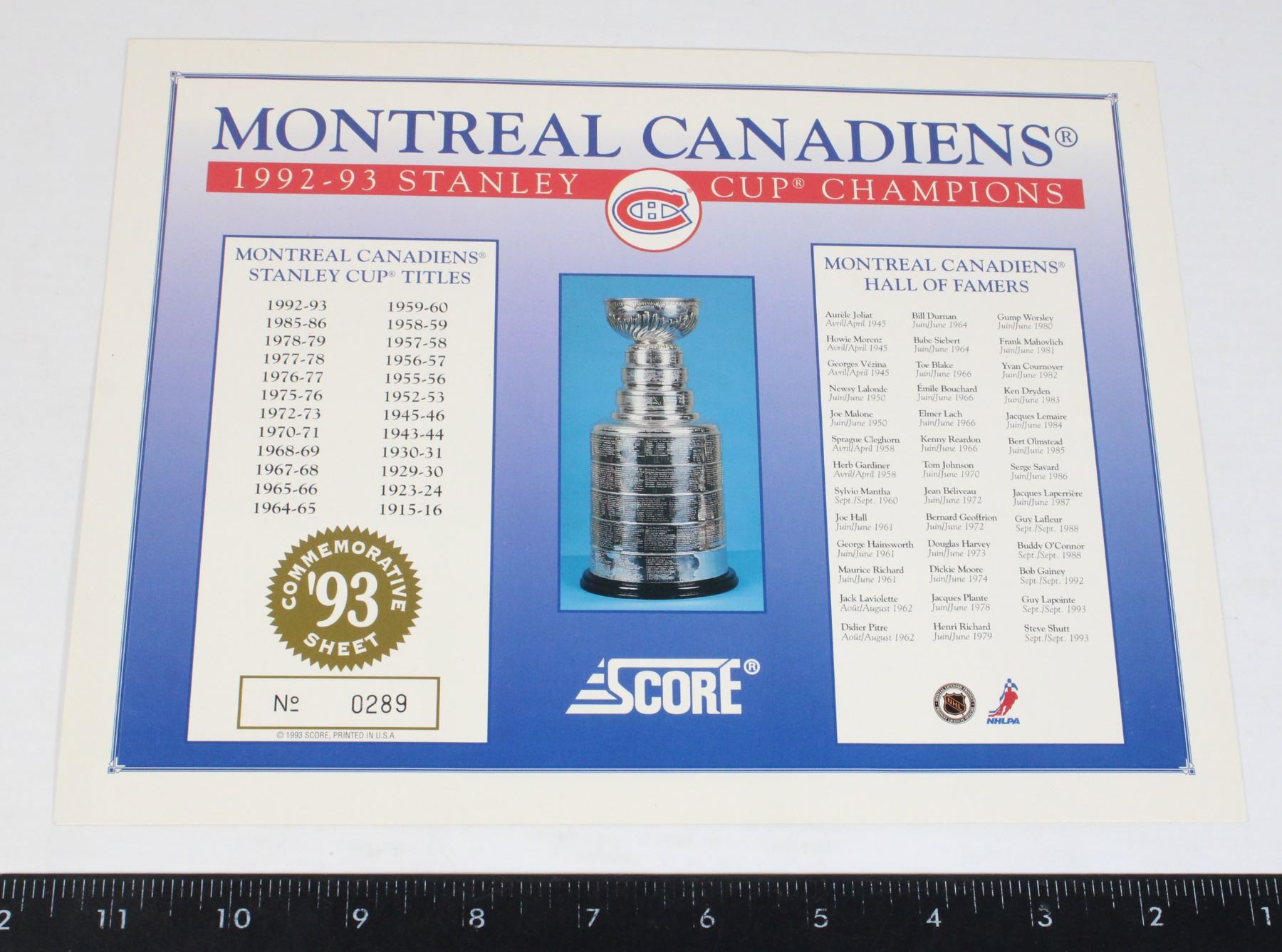 MONTREAL CANADIENS 93' STANLEY CUP COMMEMORATIVE SHEET