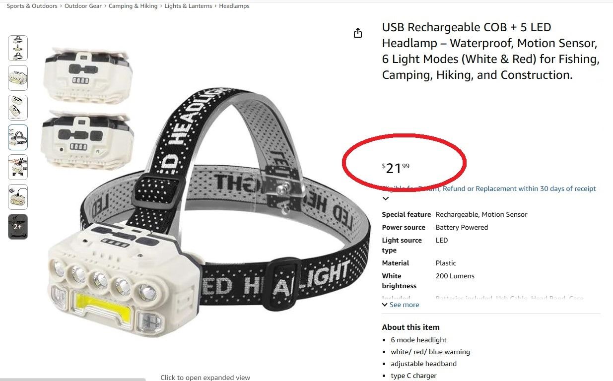 XPE+4*LED+COB+6 COLORED LED(3 RED/3 BLUE) LIGHTWEIGHT USB-C CHARGING- FOR HOME NIGHT LIGHT, OUTDOOR CAMPING, FISHING & HIKING **ALL ITEMS MUST BE REMOVED BY 5PM SATURDAY, DECEMBER 13TH 2025. ALL REMAINING ITEMS WILL BE SUBJECT TO A $6.00 PER DAY STORAGE CHARGE. ANY ITEMS REMAINING AFTER MONDAY, DECEMBER 29TH 2025 WILL BE CONSIDERED FORFEITED. NO REFUNDS WILL BE ISSUED FOR FORFEITED ITEMS. TO SCHEDULE A PICK UP APPOINTMENT CLICK HERE