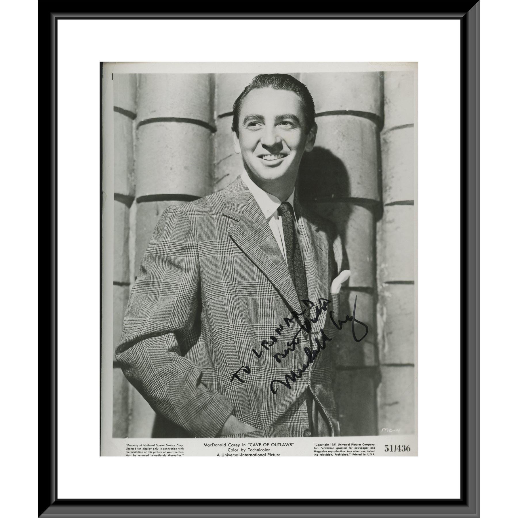 "Cave of Outlaws" 8x10 movie photo autographed by MacDonald Carey.