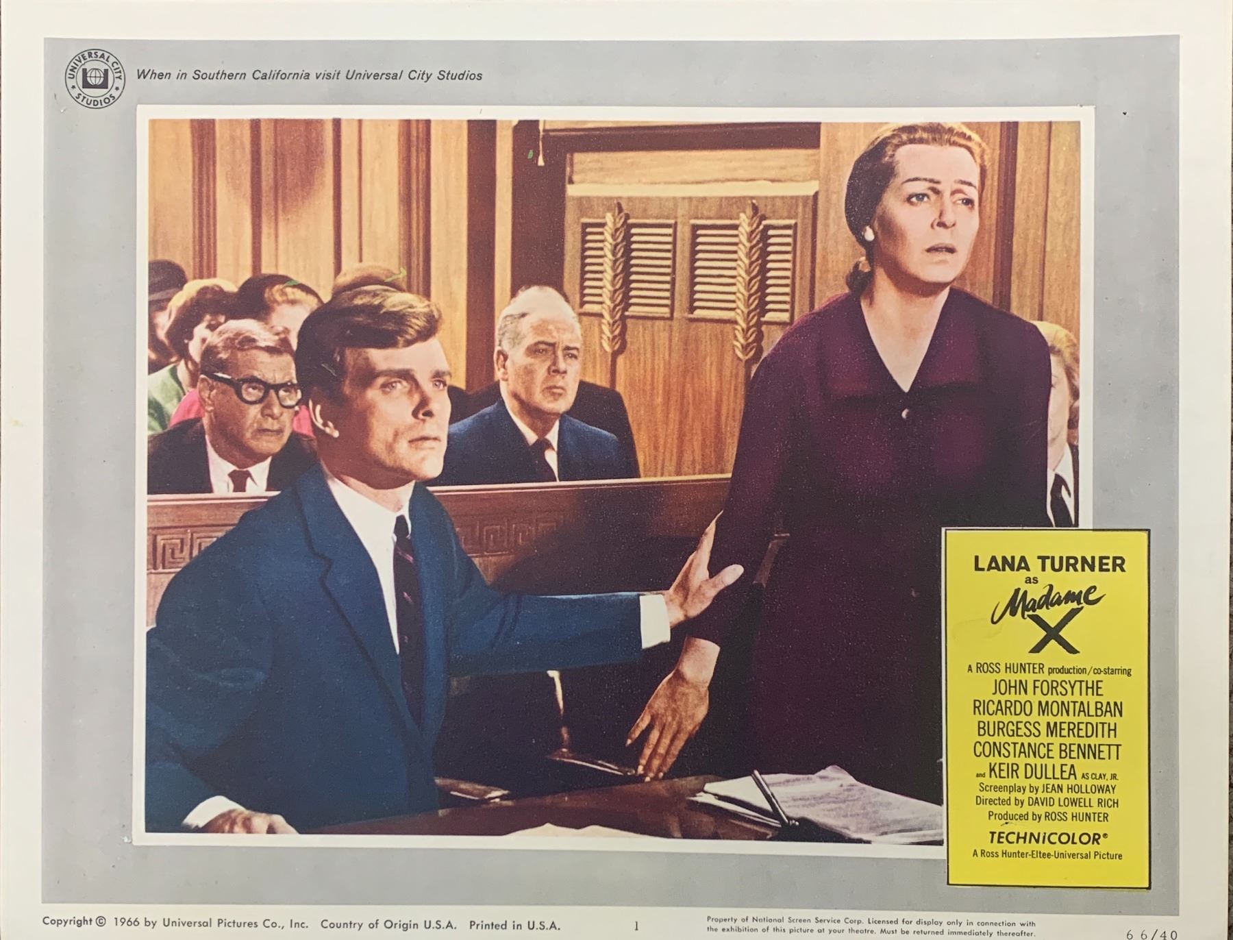 Madam X 1966 original lobby card set. 8 cards in set at 11x14 inches each. These were originally displayed in the movie theater.