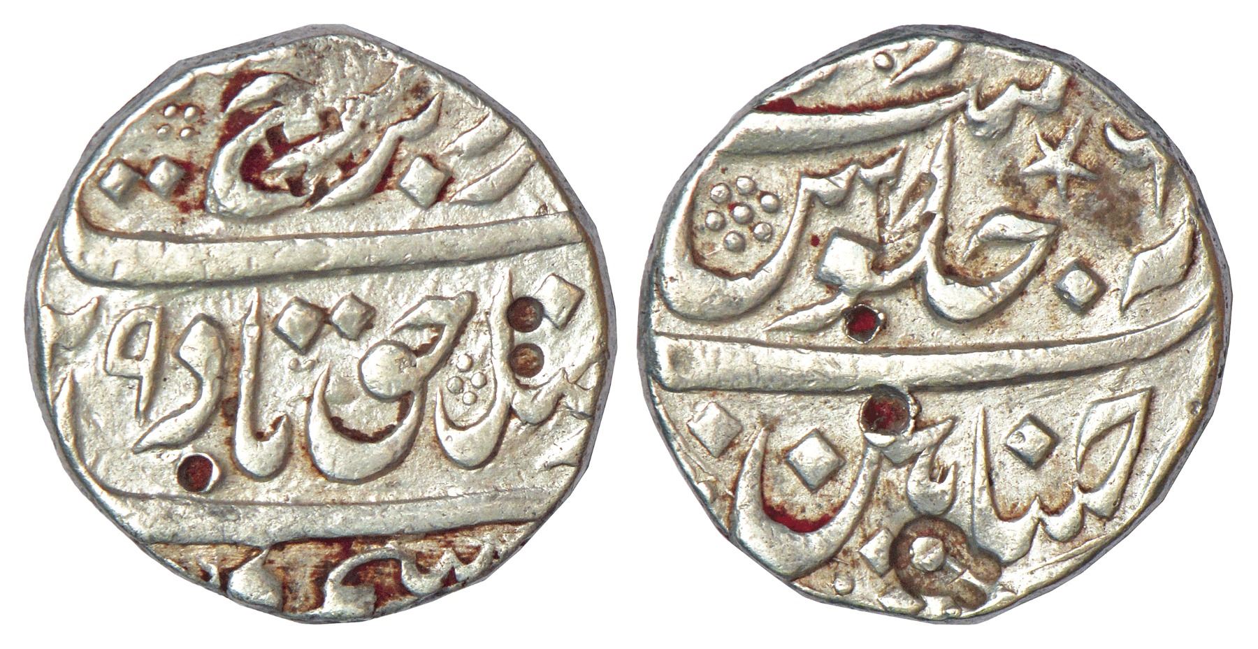 Madras Presidency, Chinapattan mint, Mughal style, silver rupee, in the name of Farrukhsiyar, AH (11)29/RY 6, star mint mark in reverse, Stevens EIC 2.25, 11.50g.