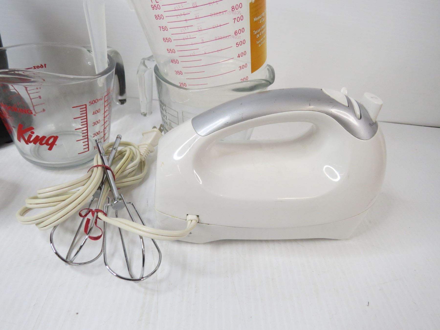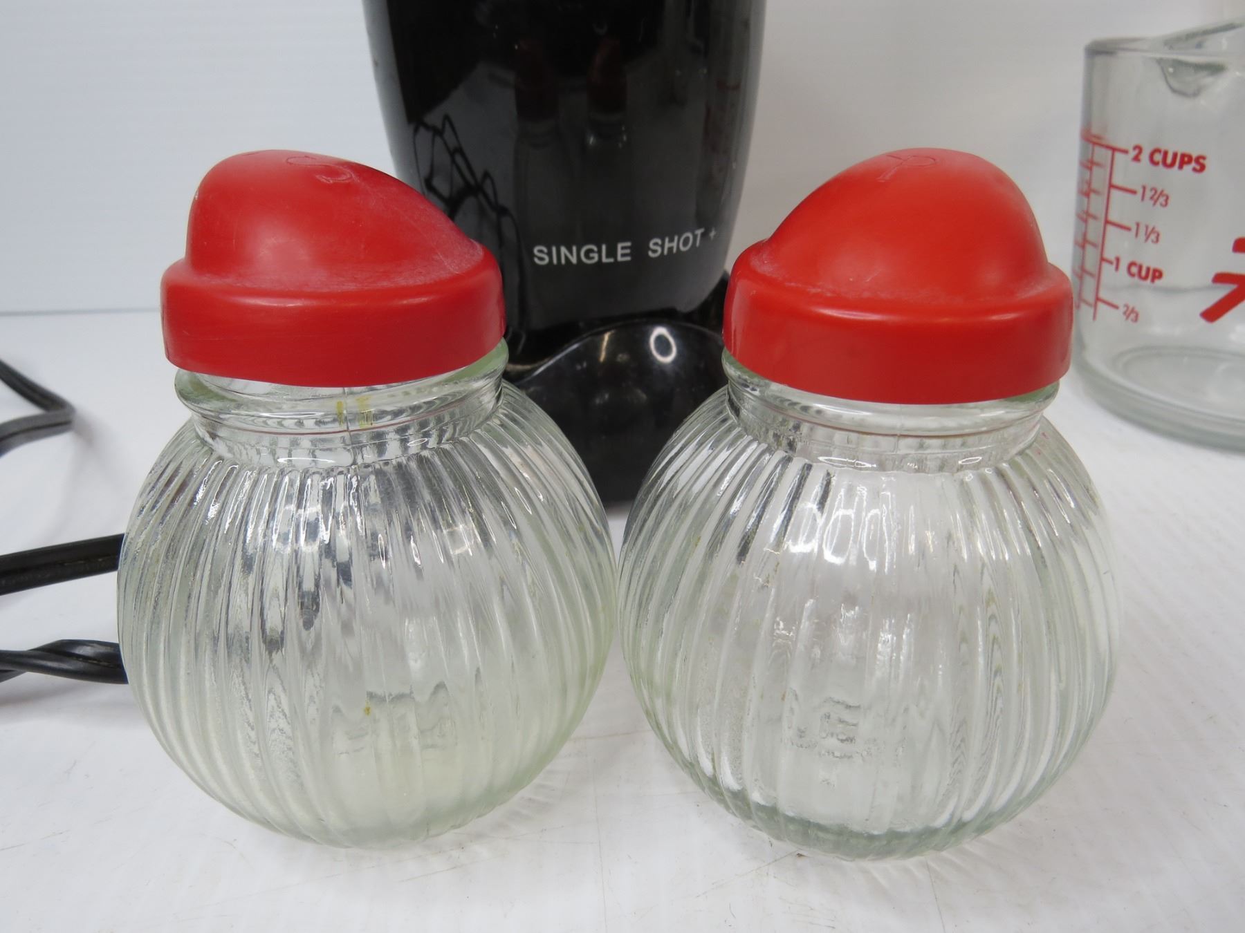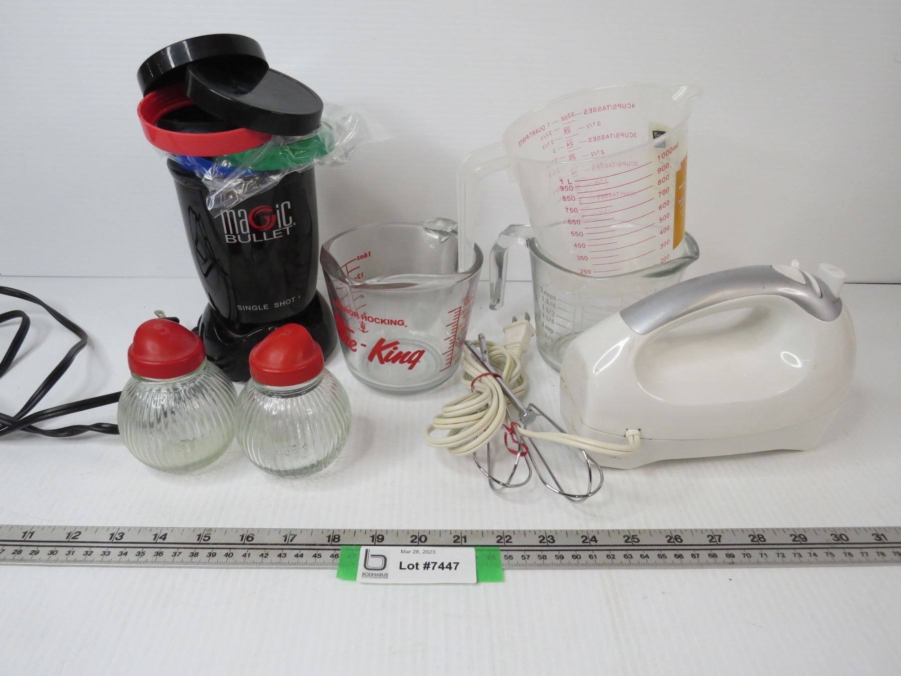 Magic Bullet (missing piece) (2) Fire King Measuring Cups - Mixer w/Beaters Untested - Salt & Pepper Shakers