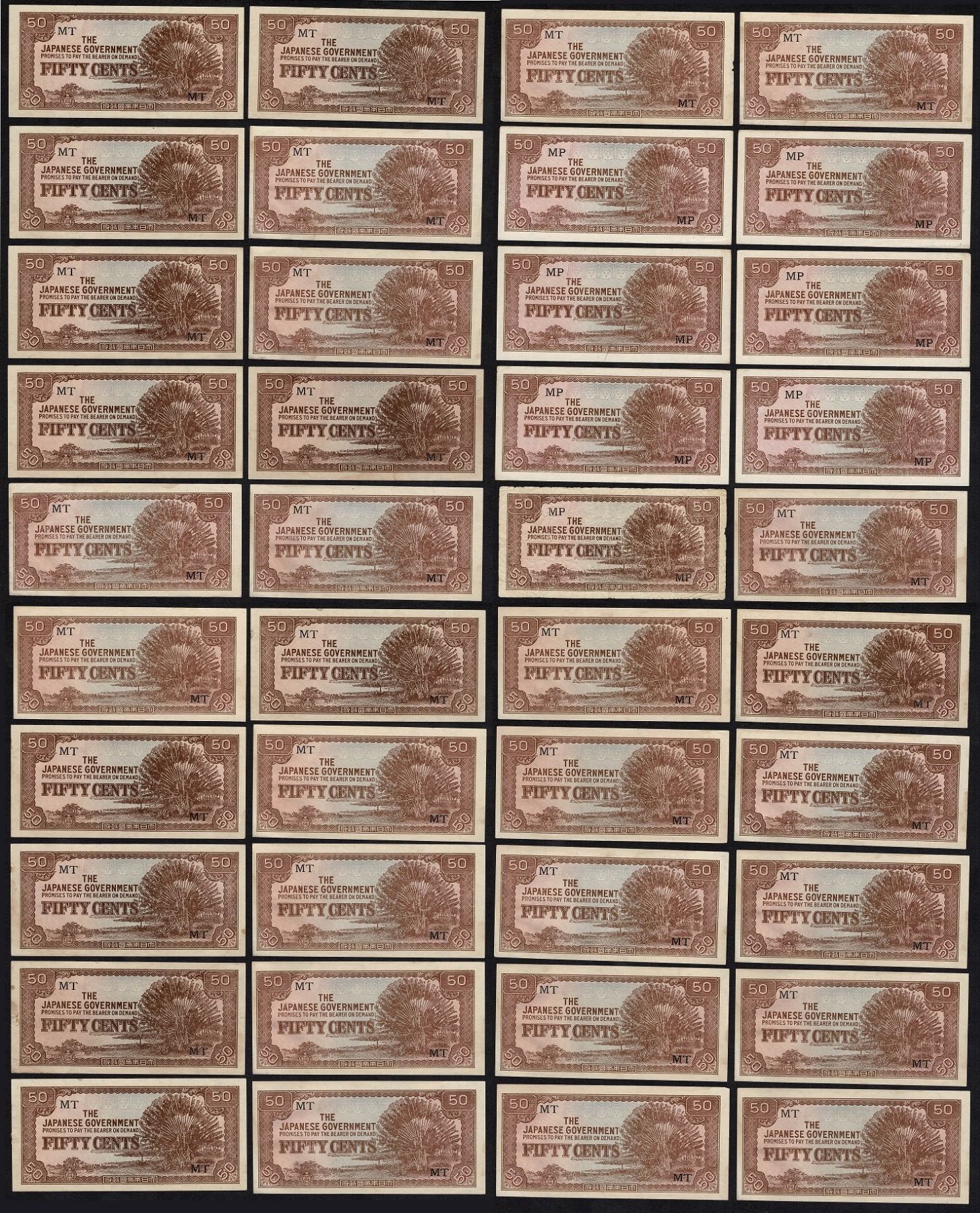 Malaya 40x 50 Cents 1942 Japanese Government Pick M4