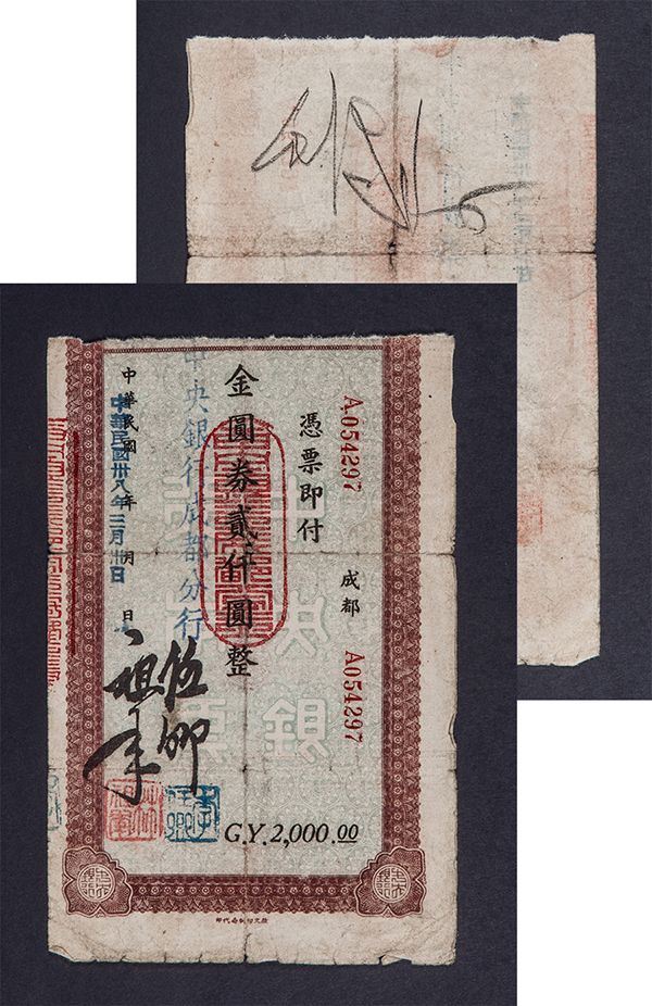 Mao Zedong (Or Tse-Tung) (1893-1976) Chinese communist revolutionary, political theorist and politician; founding father of the People's Republic of China in 1949. He governed the country as Chairman of the Communist Party of China from its establishment until his death. Chinese note from a private bank signed on the verso in black pencil, 6� x 4� in., n.p., n.p. The note is worn but the signature is large and strong.