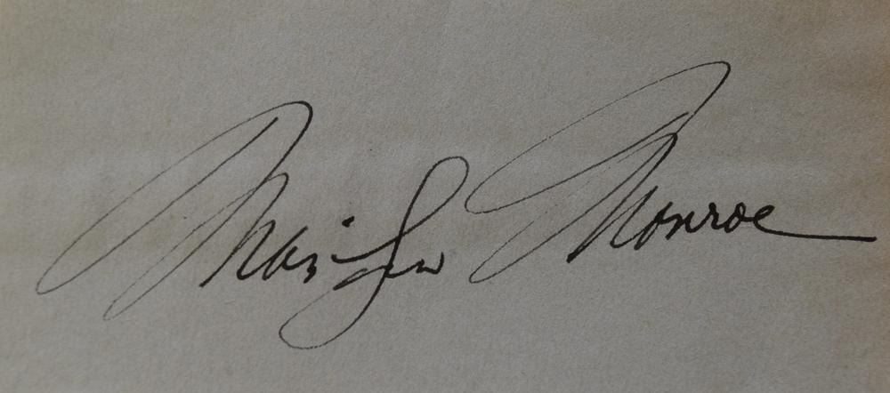 4 in. by 1 3/4 in. slip signed: Marilyn Monroe.
