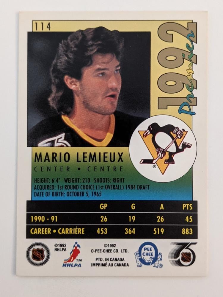 Mario Lemieux Premier '92 O-Pee-Chee Hockey Card