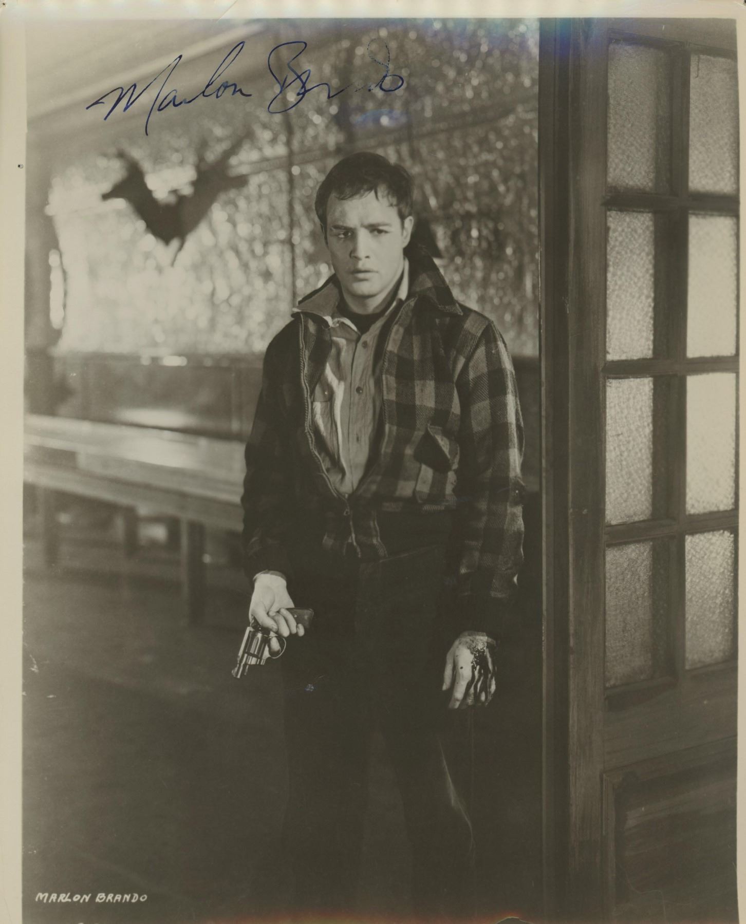 "On the Waterfront" 8x10 movie photo autographed by Marlon Brando. Custom matted and framed, the finished piece is 11x14.