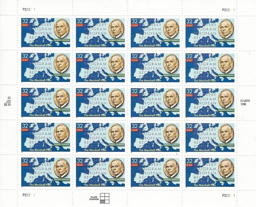US Stamp - 1997 Marshall Plan - 20 Stamp Sheet - Scott #3141
