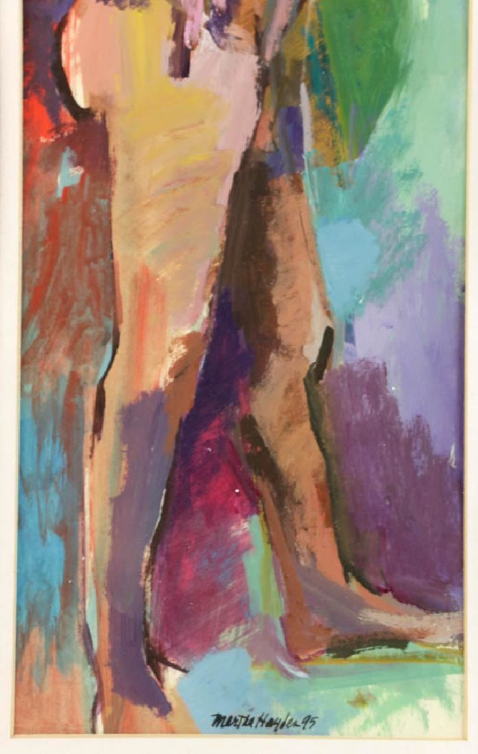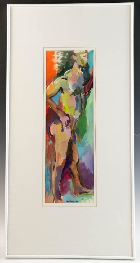 Martha Nessler Hayden (1936-), standing male nude, watercolor, signed and dated '95' L/C, 20" x 6 1/2", framed 32 1/4" x 16 1/4". Provenance: Palm Desert, California estate.