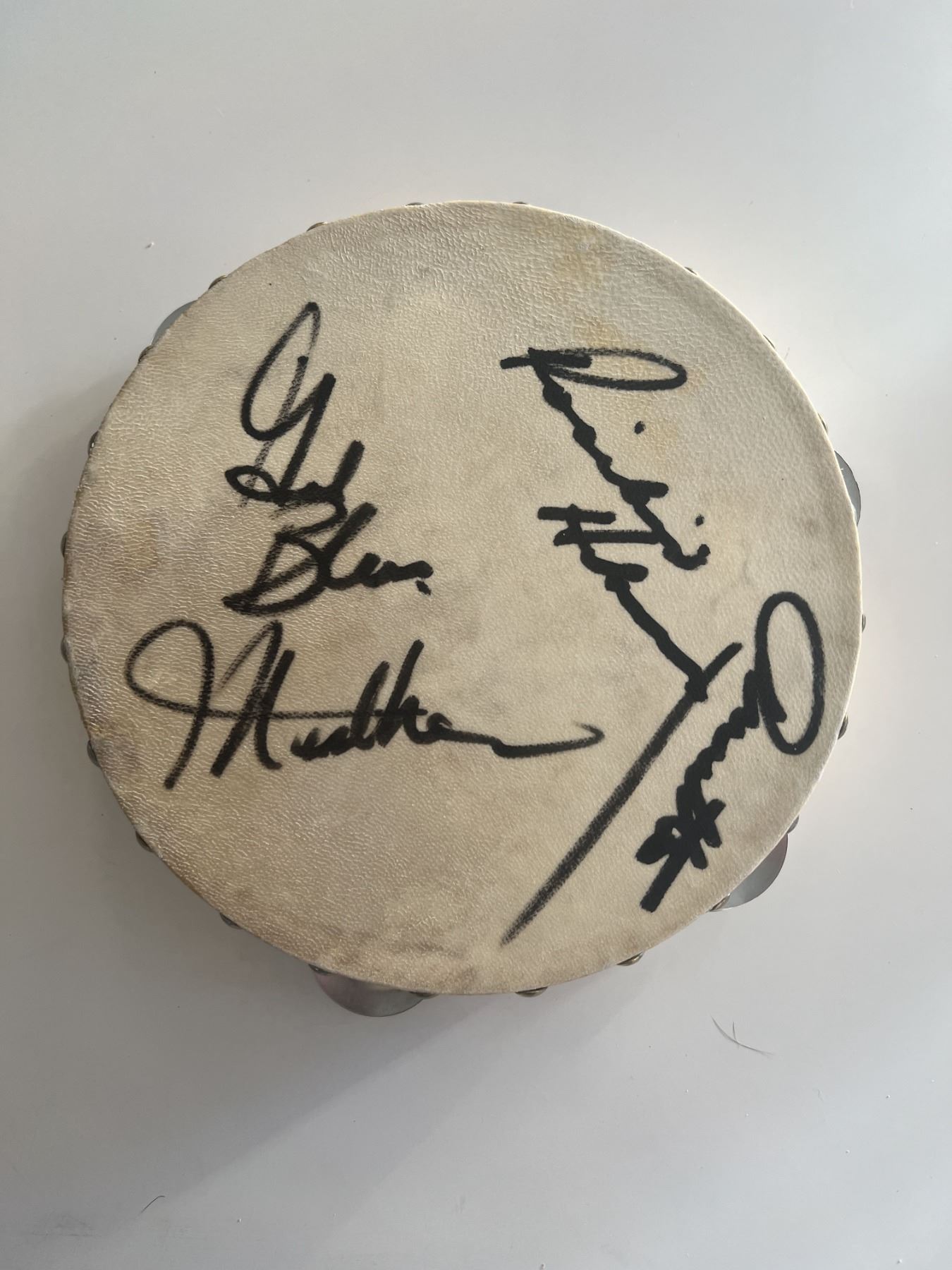Martha and The Vandellas signed tambourine autographed by Martha Reeves, Annette Beard and Rosalind Ashford. 8 inches