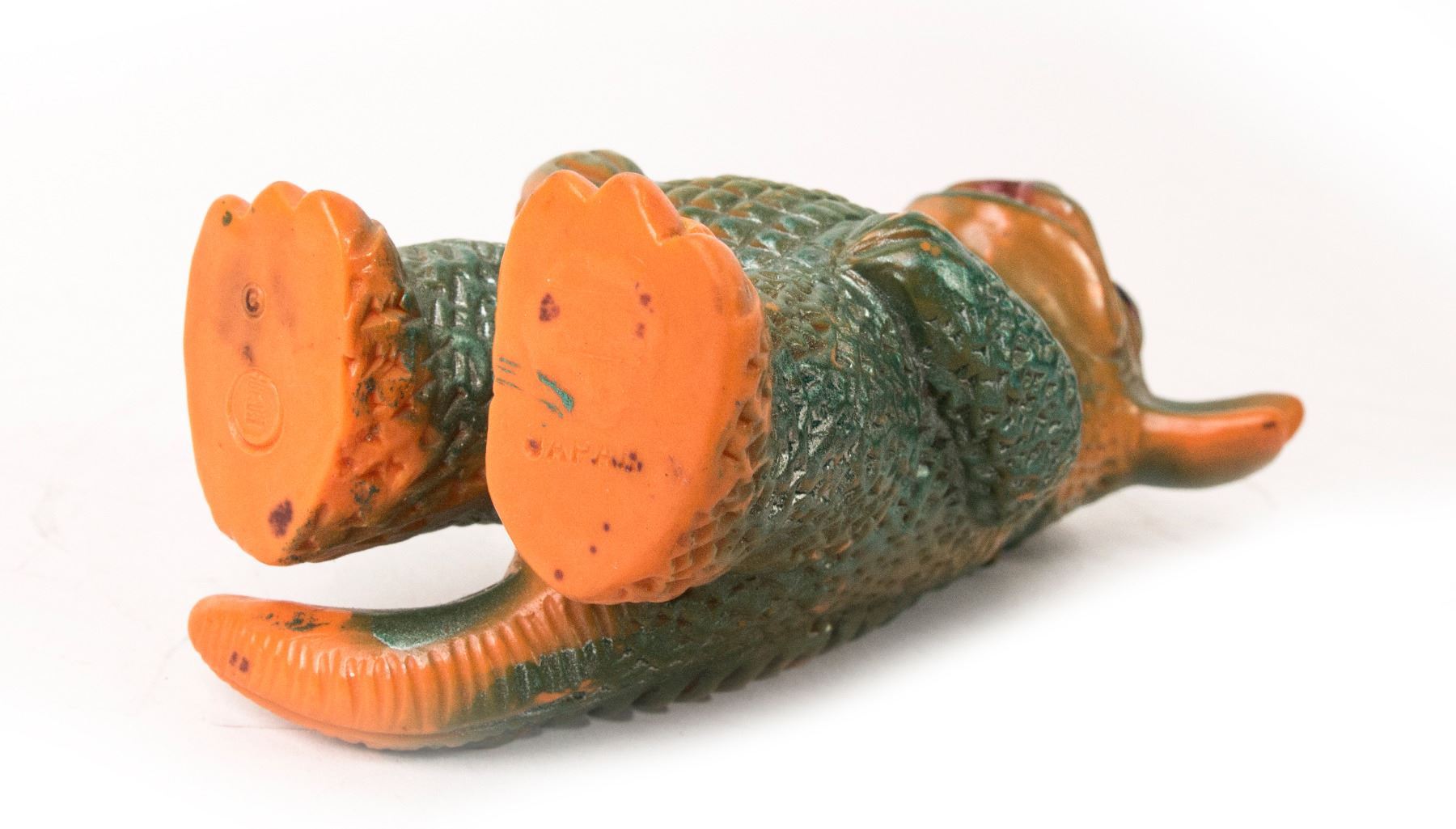 1966. Marusan Balloon Blowing Baragon Vinyl Figure. 5. 25” tall. VG+ Minor paint wear.