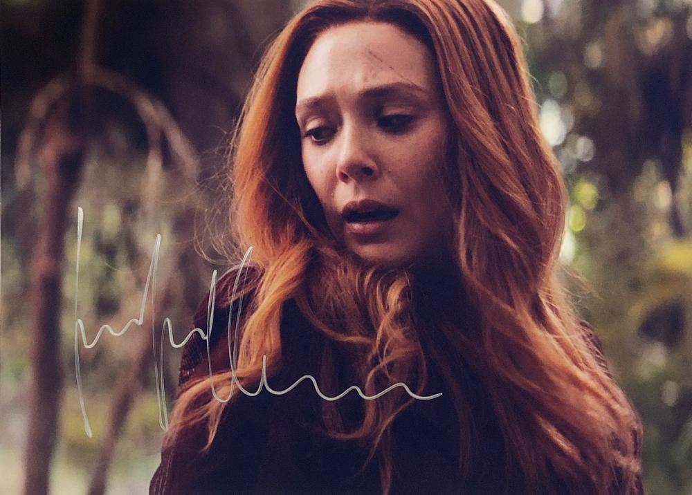 Marvel Elizabeth Olsen facsimile signed movie photo. 8x10 inches. This item is a reprint of an original autograph