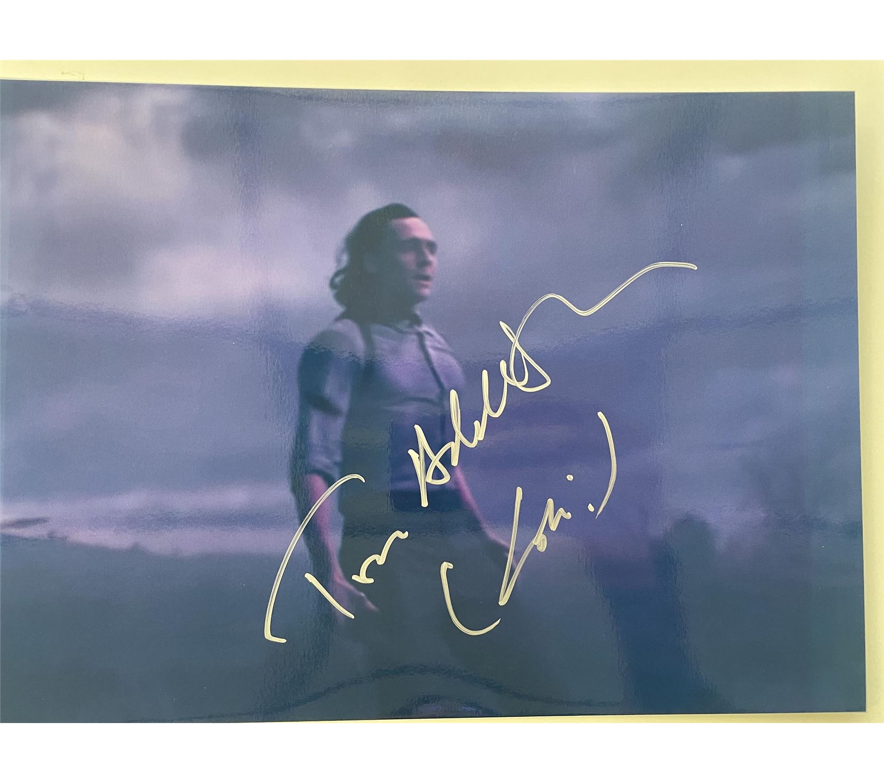 Marvel signed movie photo autographed by Tom Hiddleston. 8x10 inches