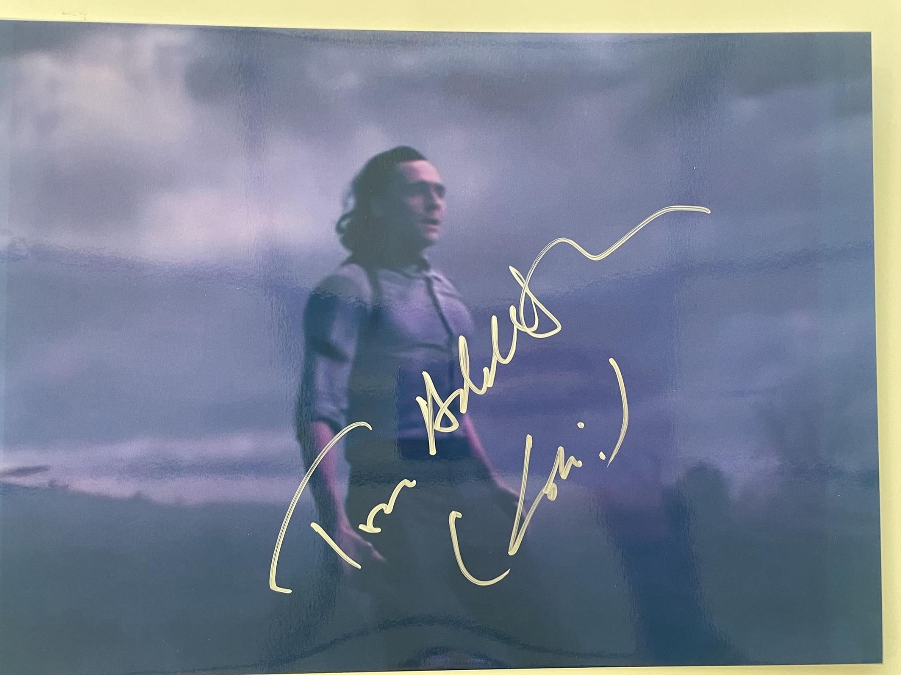 Marvel signed movie photo autographed by Tom Hiddleston. 8x10 inches