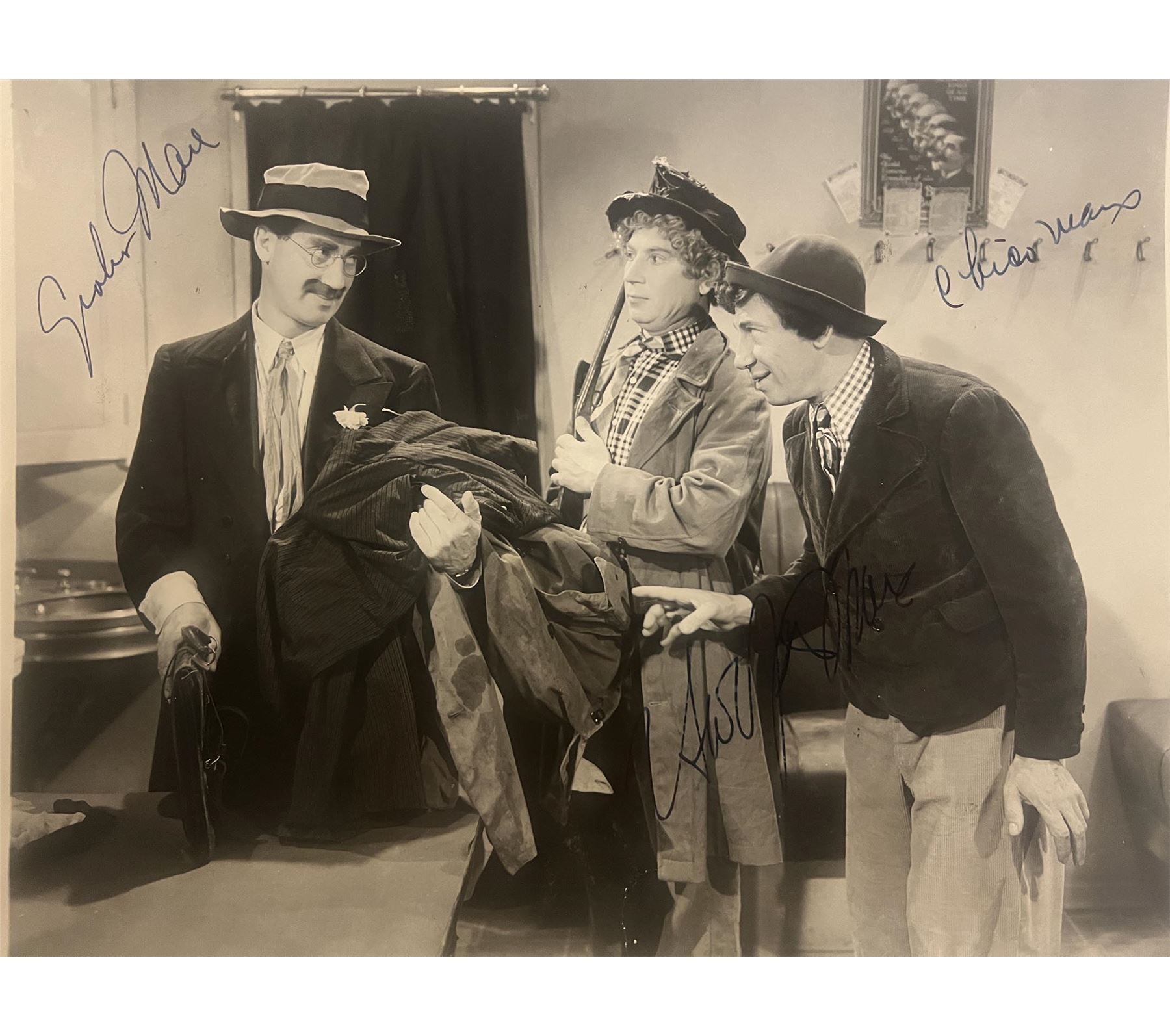 Marx Brothers signed photo autographed by Chico, Harpo, and Groucho Marx. 10x8 inches