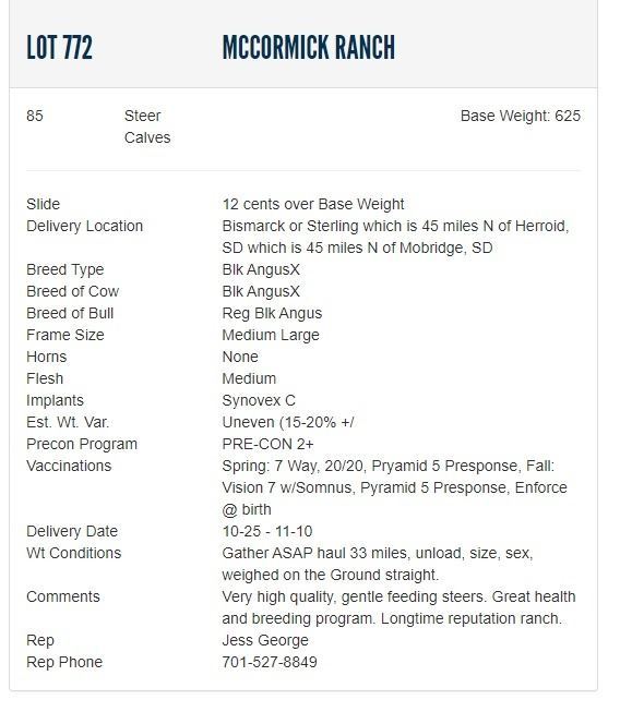 McCormick Ranch - 85 Steers; Base Weight: 625