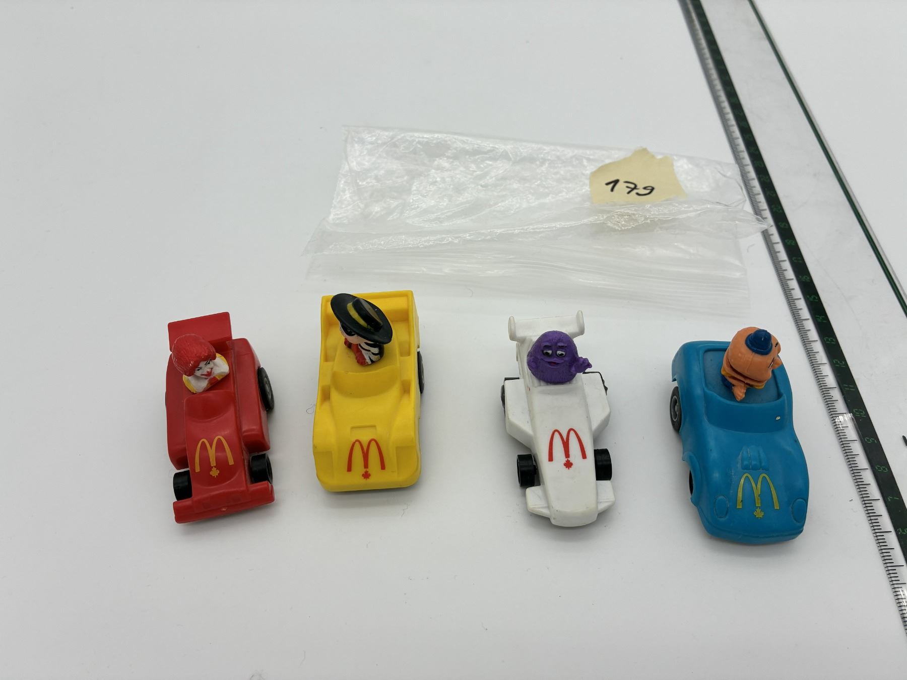 Lot of 4 McDonald’s pullback toy cars. Vintage fast food collectibles.