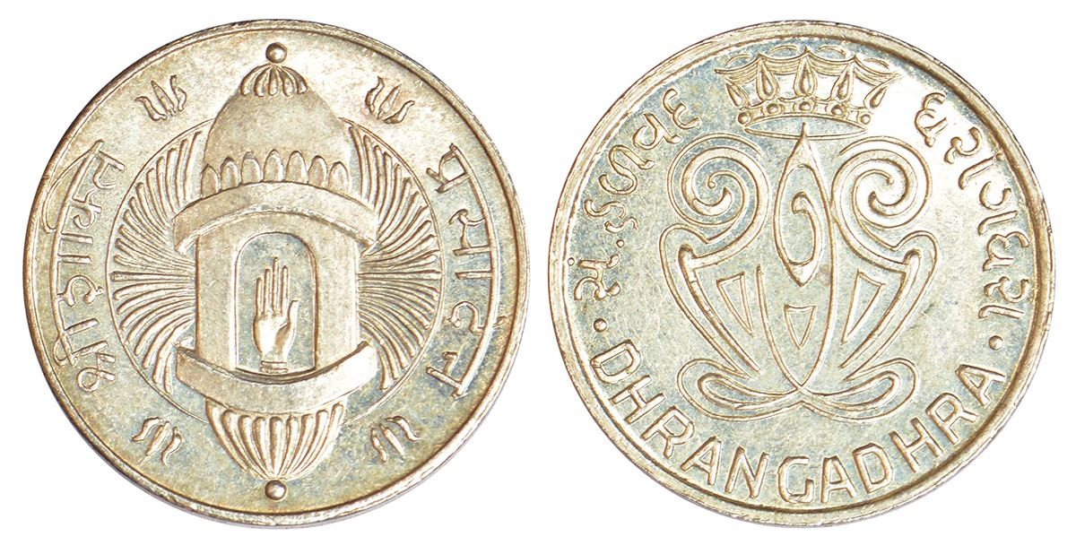 Medal: Dhrangadhra, Mayuradhvaja Singhji, miniature Coronation medal, 1942, silver,