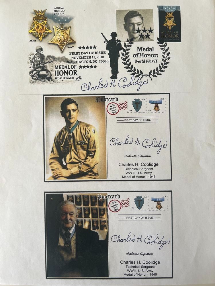 Medal of Honor Charles H. Coolidge signed photo. 9 x12 inches
