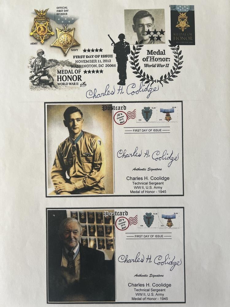 Medal of Honor Charles H. Coolidge signed photo. 9 x12 inches